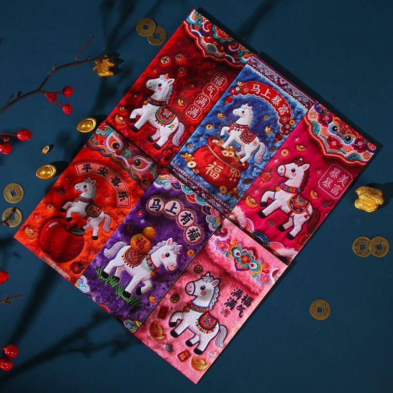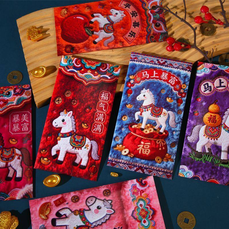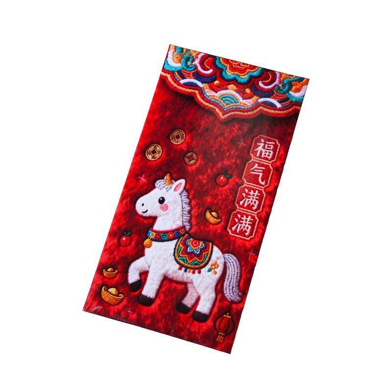 2026马年5D平面毛绒刺绣风格可爱卡通春节元宵节利是封红包新年