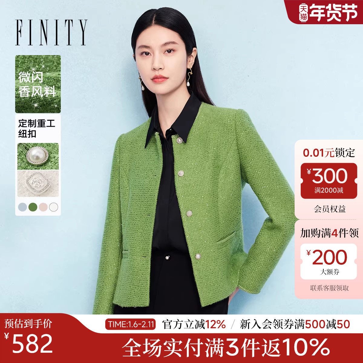 菲妮迪小香风短外套早春新款高级感气质春装名媛上衣女花呢外套女