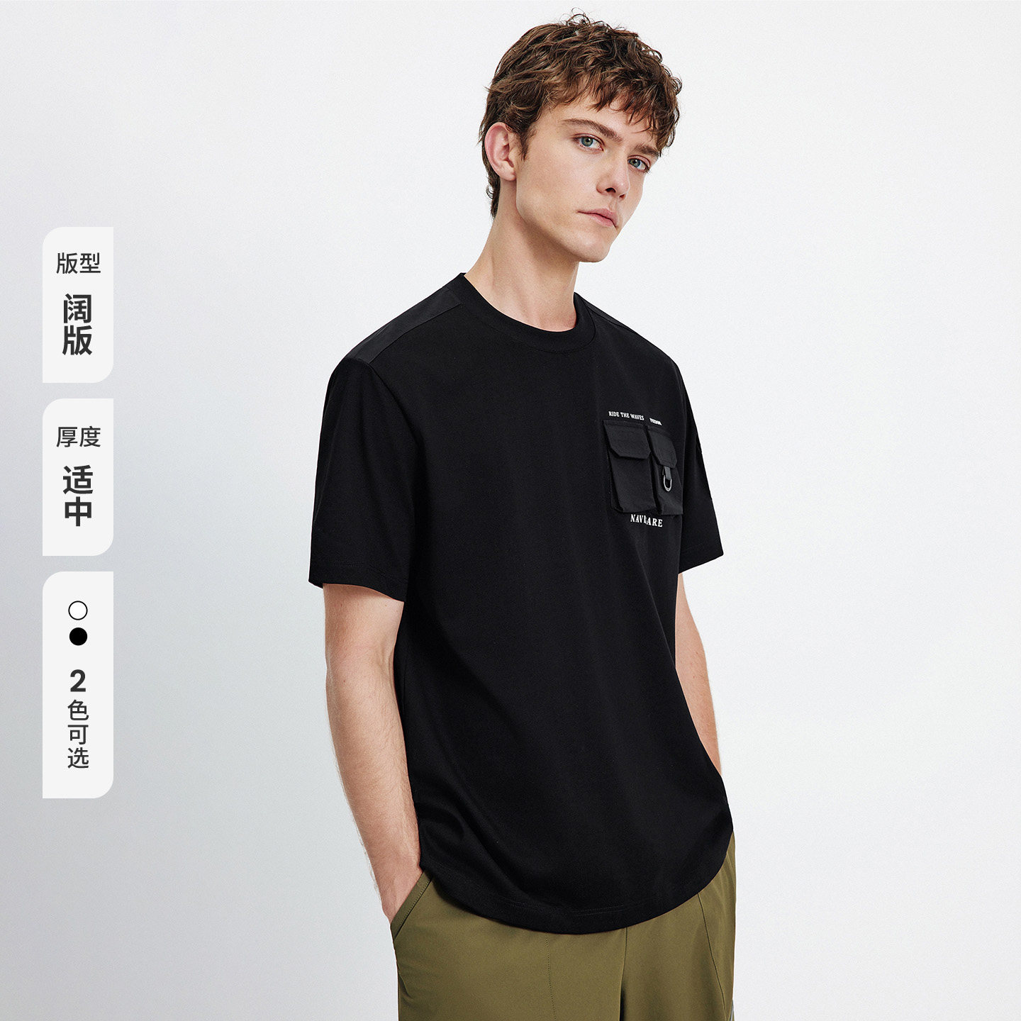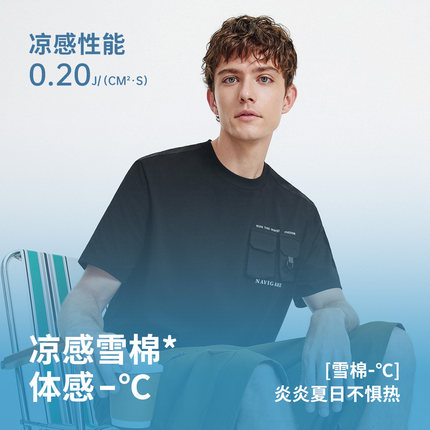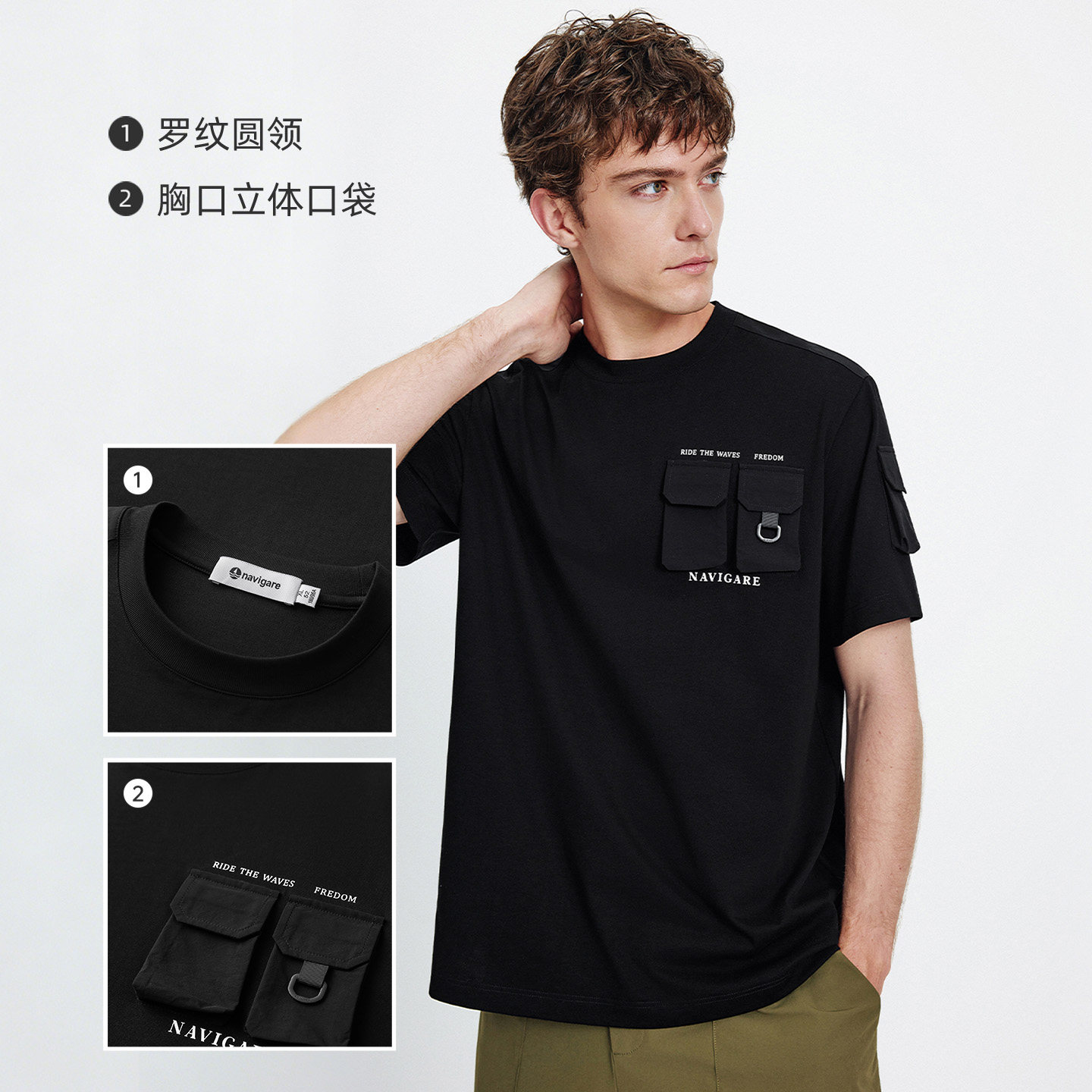 Navigare意大利小帆船黑色套头短袖T恤男2026夏季凉感宽松体恤衫