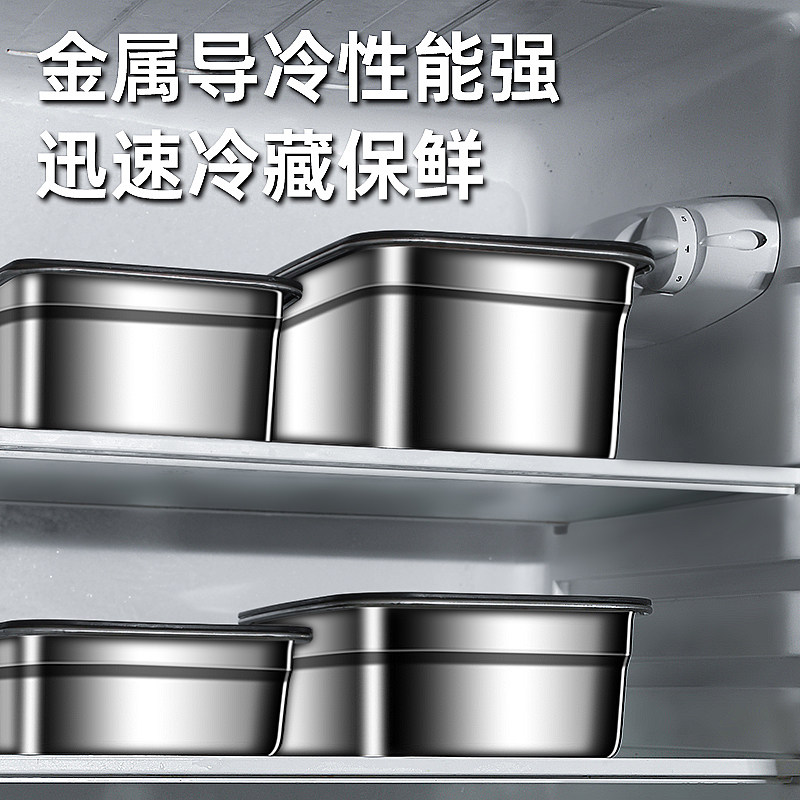 保鲜盒不锈钢加厚食品级方盘冰箱收纳盒带盖子烧烤凉菜盘烤鱼盘子