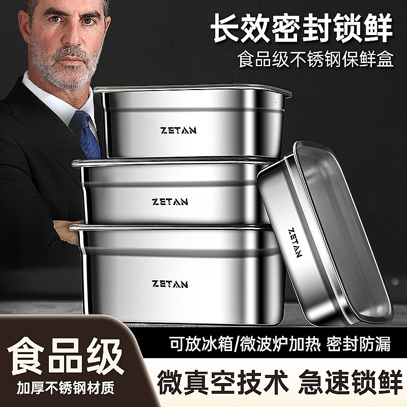保鲜盒不锈钢食品级冰箱专用家用带盖密封便当盒饭盒收纳冷冻盒子
