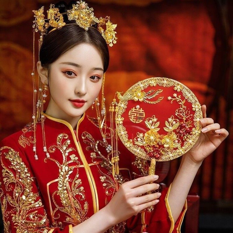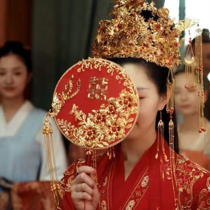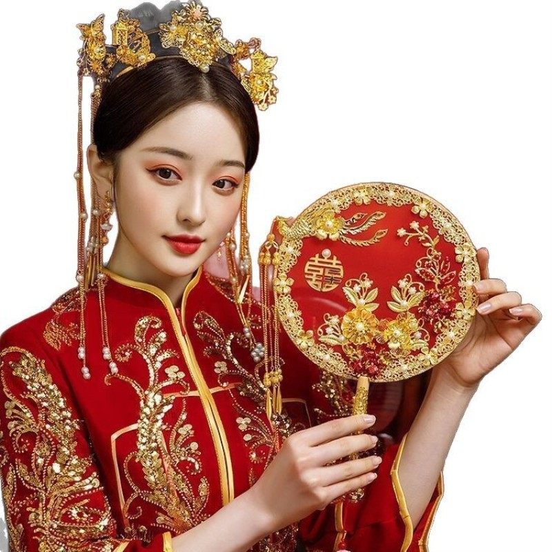结婚新嫁团扇古风成品中式婚礼秀禾扇喜扇成品材料包