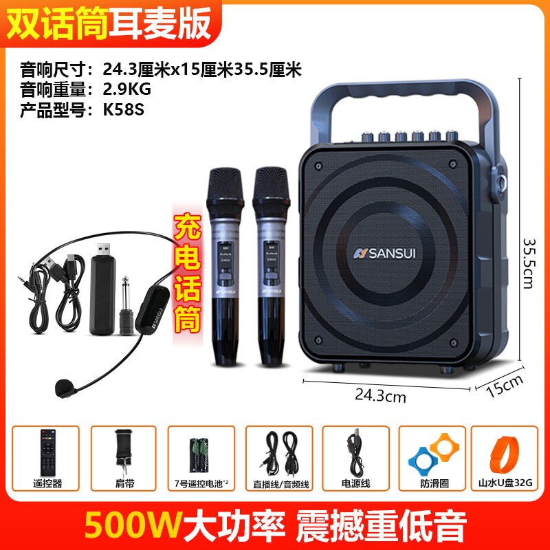 山水K58广场舞音响蓝牙户外大音用k歌重低音炮无线量手提便携式家