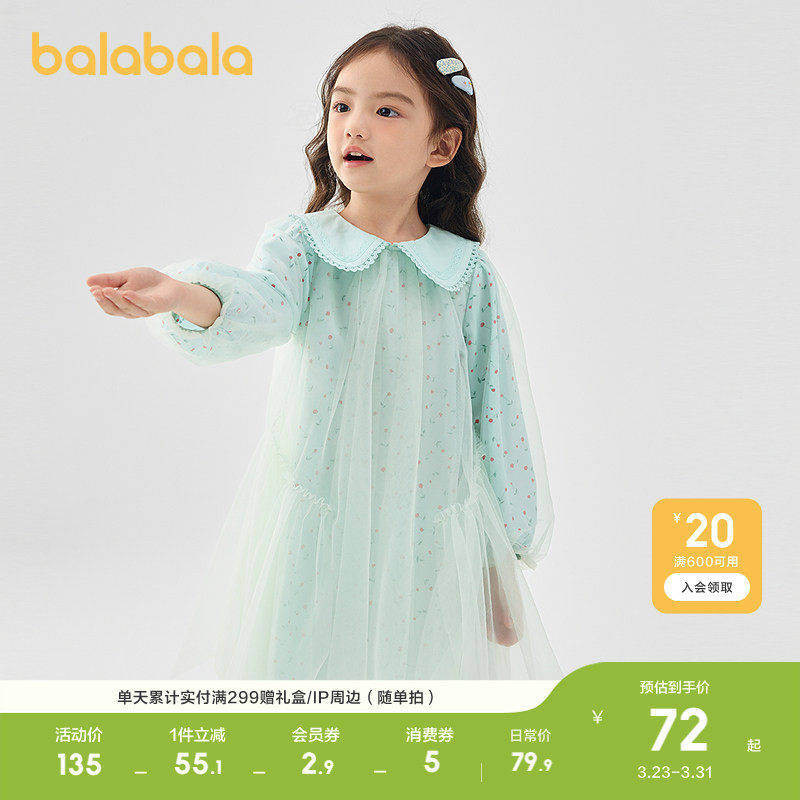 【balaOne】巴拉巴拉童装女童连衣裙2025新款春装网纱裙甜美洋气