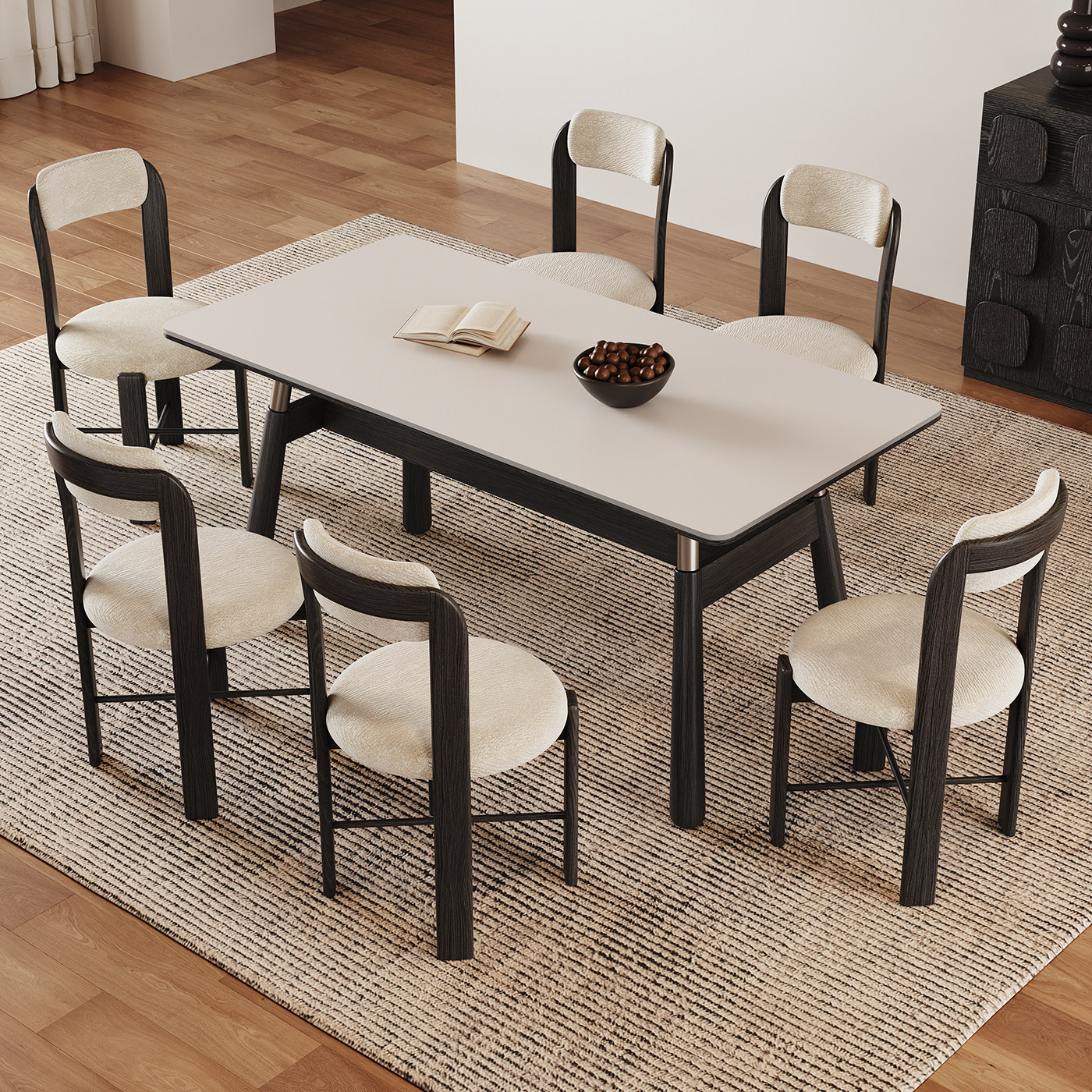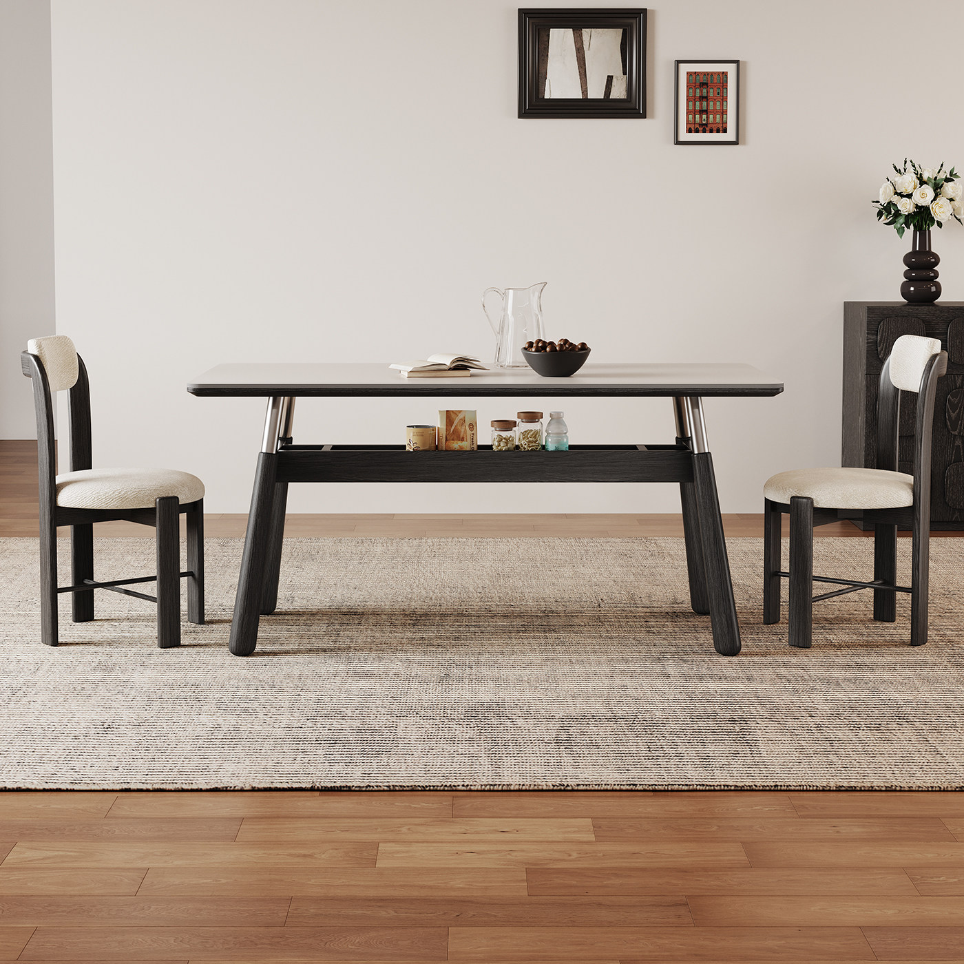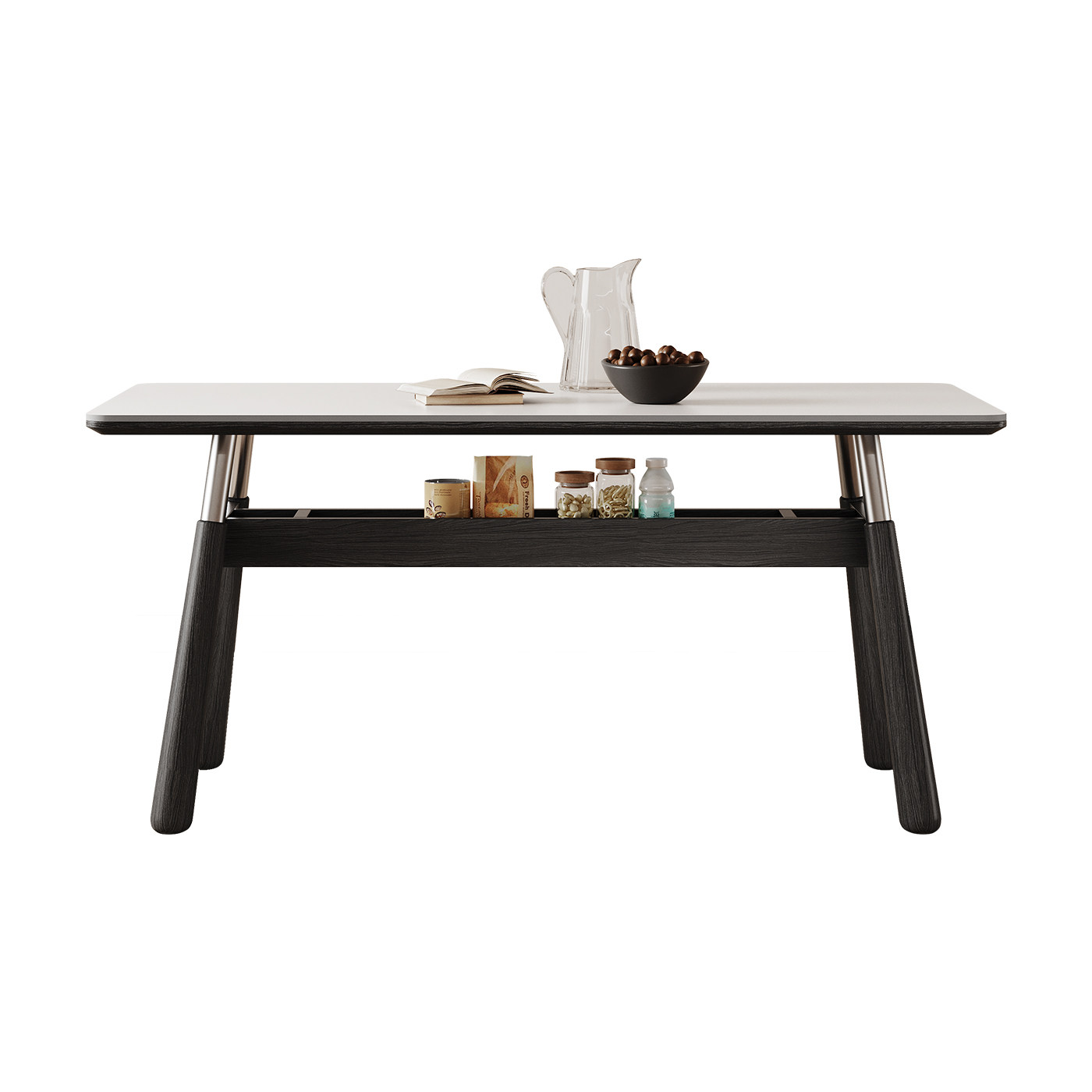 实木餐桌长方形家用双层储物现代轻奢简约小户型高端纯白岩板餐桌