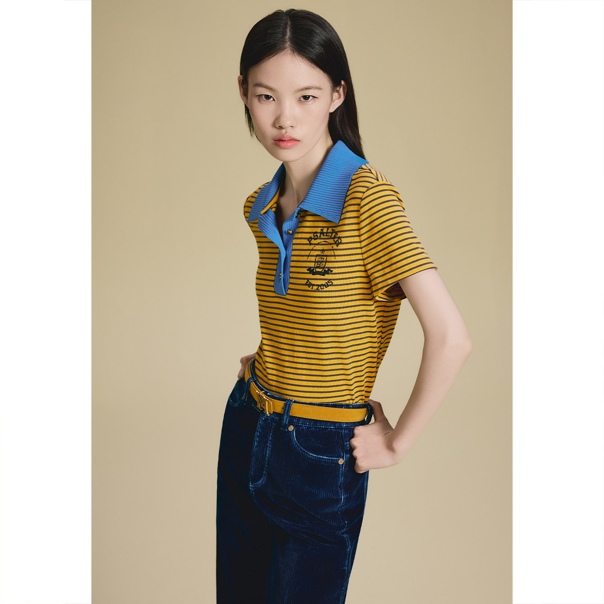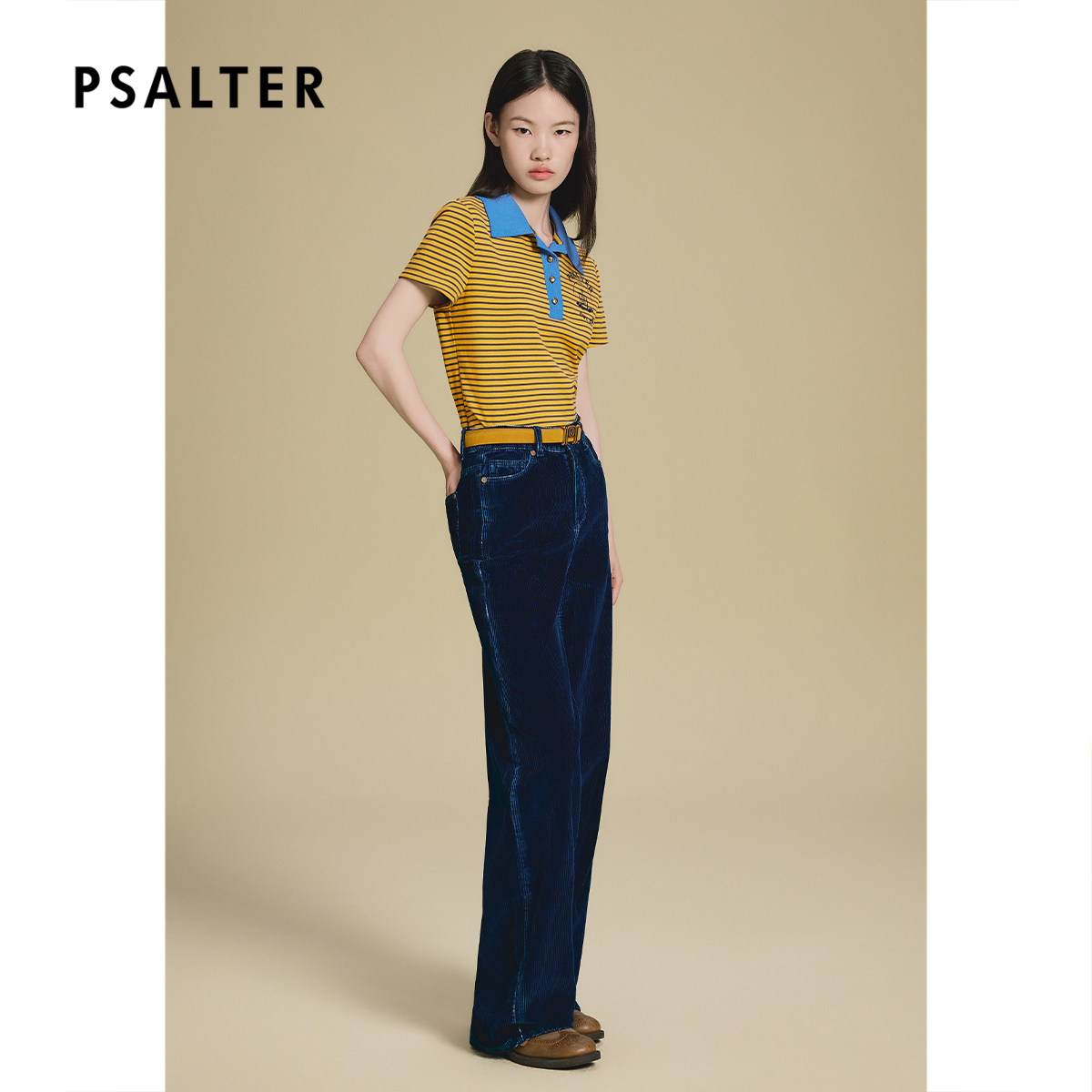 PSALTER诗篇学院风纯棉 箱型撞色polo领条纹针织衫2025秋款