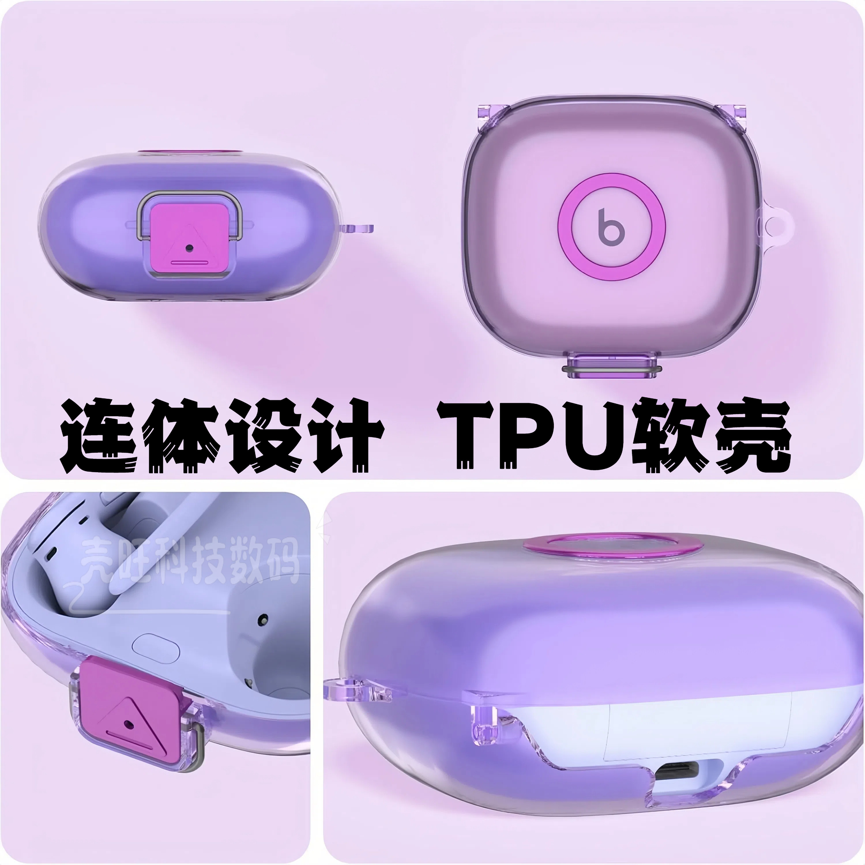 适用魔音Beats Powerbeats Pro 2耳机保护套连体透明beats保护壳高级感紫Beats Powerbeats Pro2耳机套