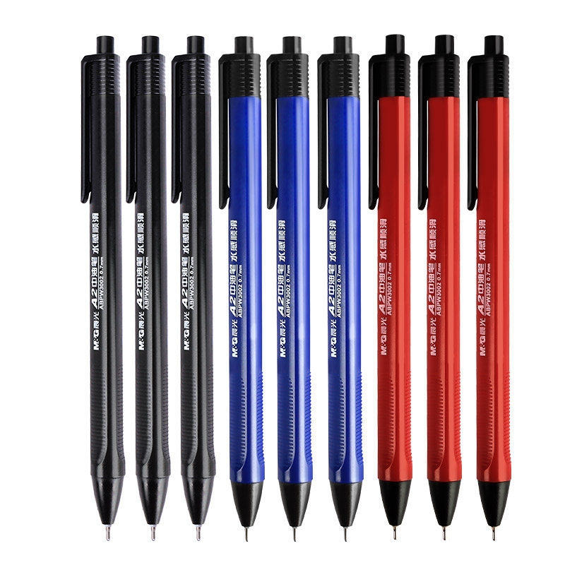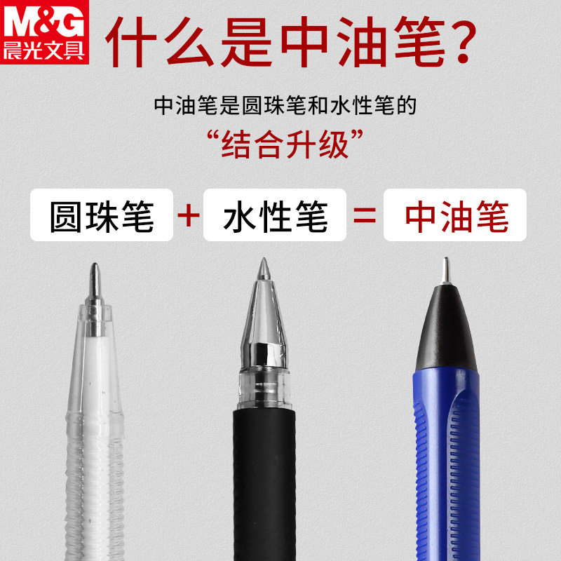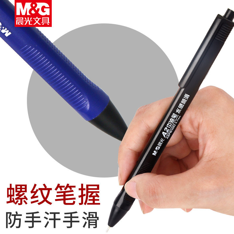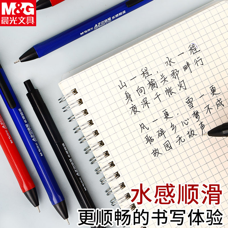 晨光圆珠笔按压式a2中油笔水感顺滑小学生专用黑色蓝色油笔教师专用红色红油性笔0.7按动黑笔批发送笔芯