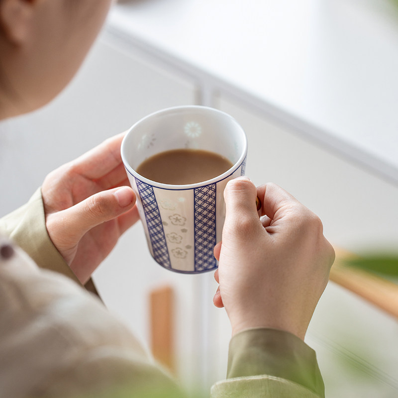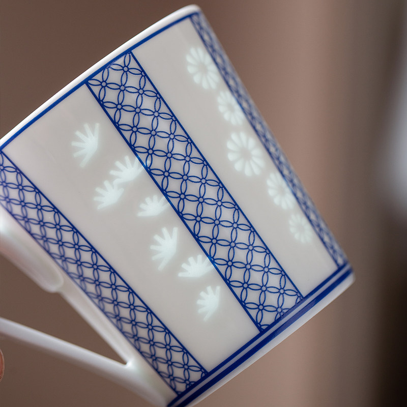 景德镇官方陶瓷玉柏青花梅兰竹菊玲珑咖啡杯陶瓷马克杯