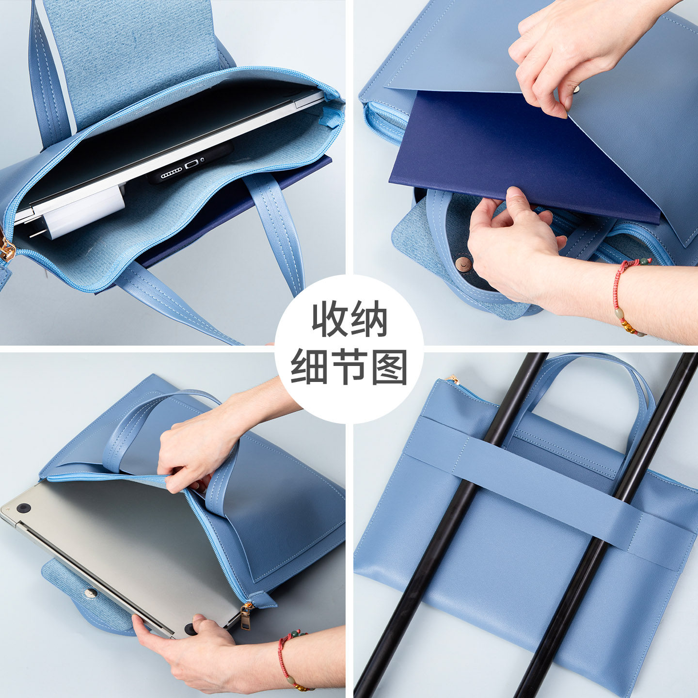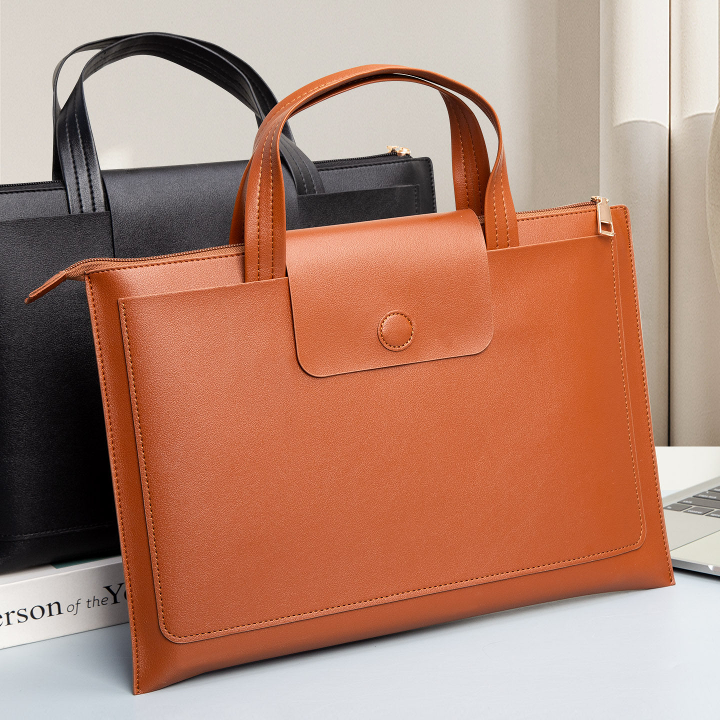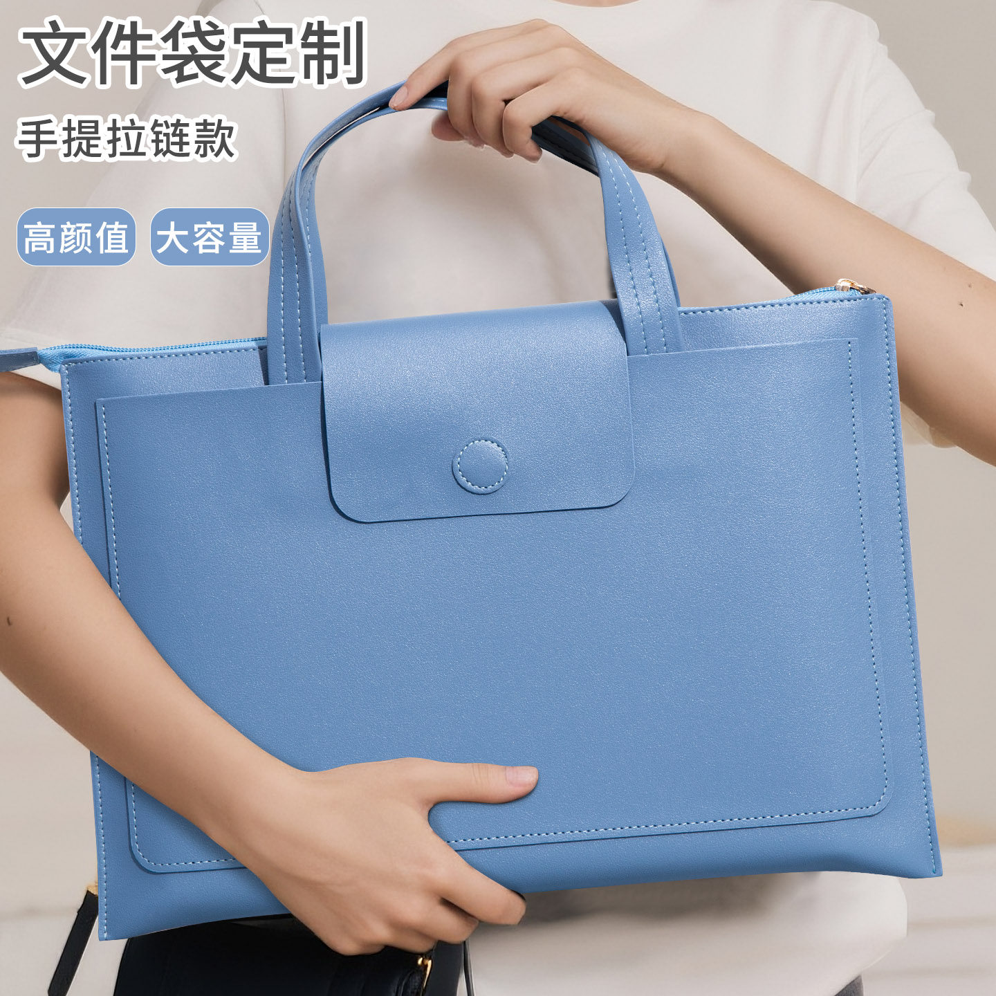 A4皮质文件袋定制大容量加厚手提拉链款简约笔记本电脑包收纳资料袋商务会议公文包合同文件包办公档案袋防水
