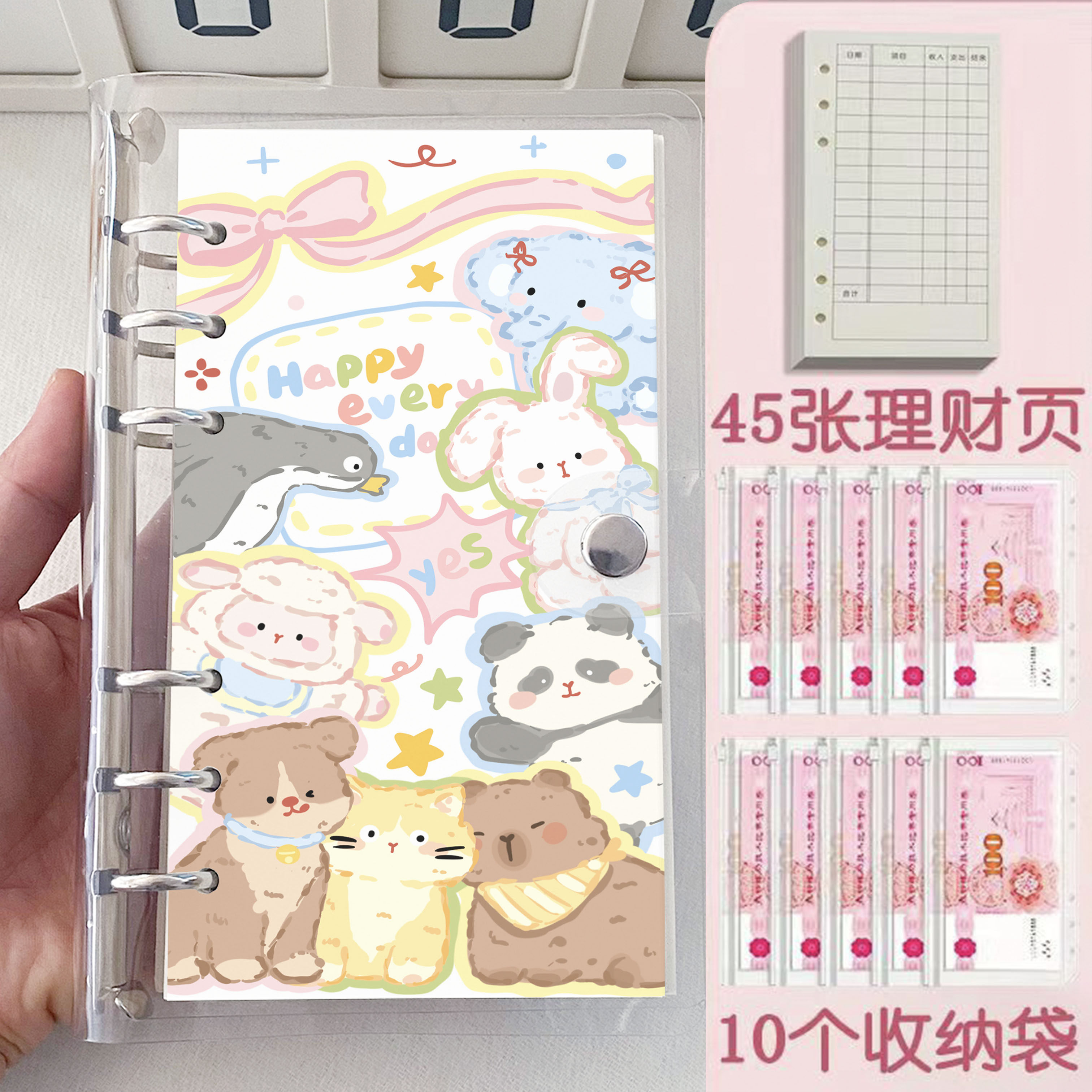 卡通存钱本学生大容量现金收账本家庭零钱收纳袋活页攒钱账册卡袋