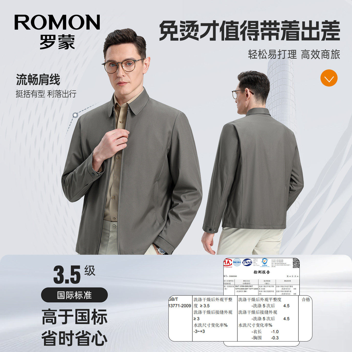 【免烫抗皱】罗蒙男士商务夹克衫2026春季新款短款行政干部爸爸装