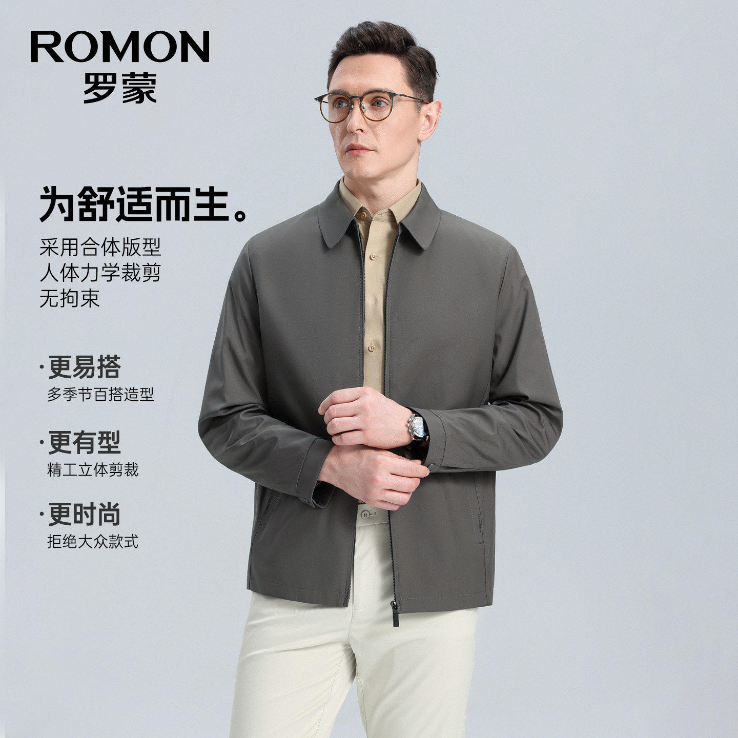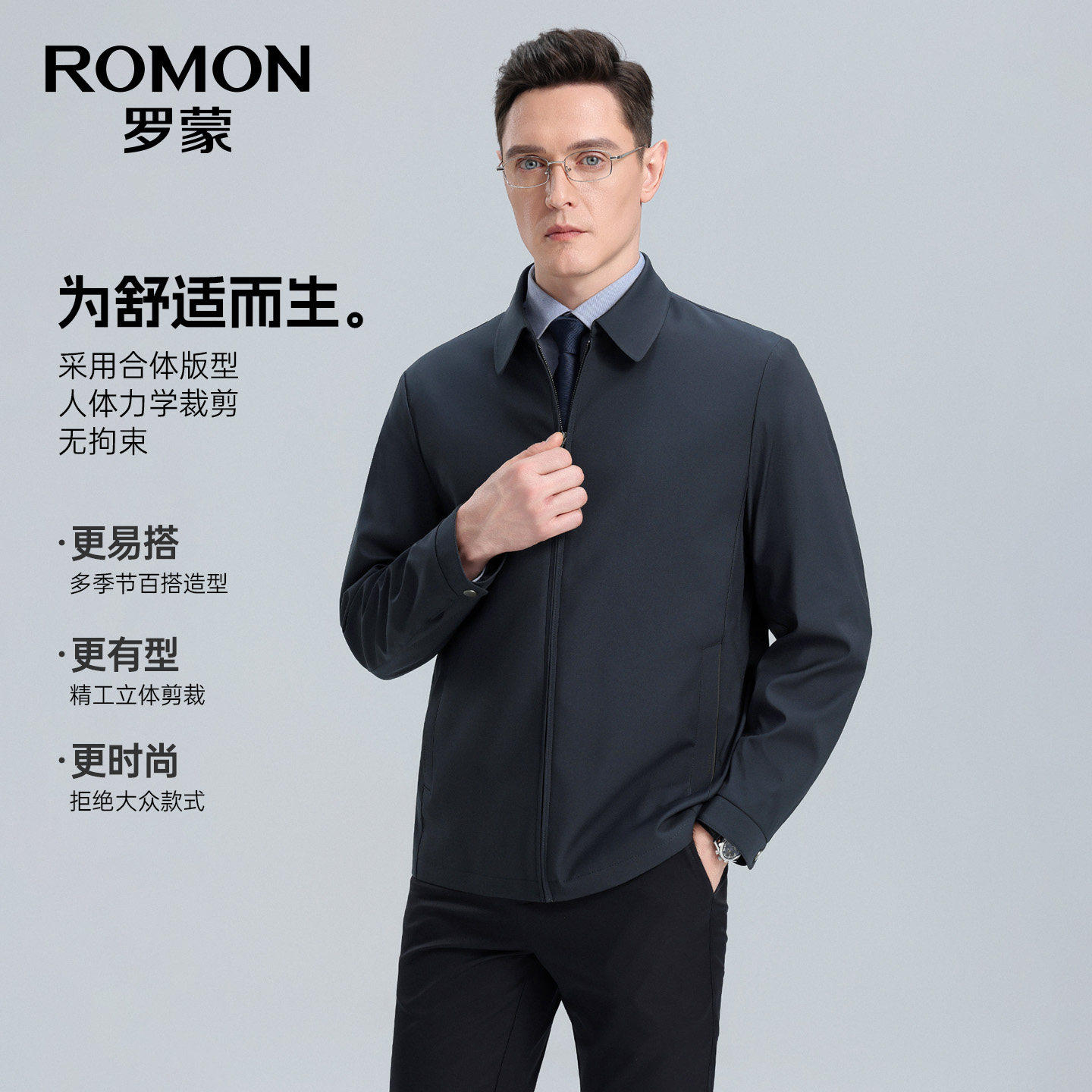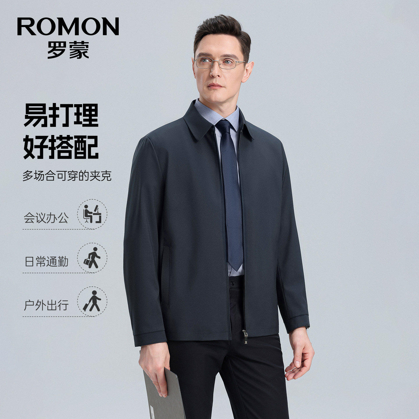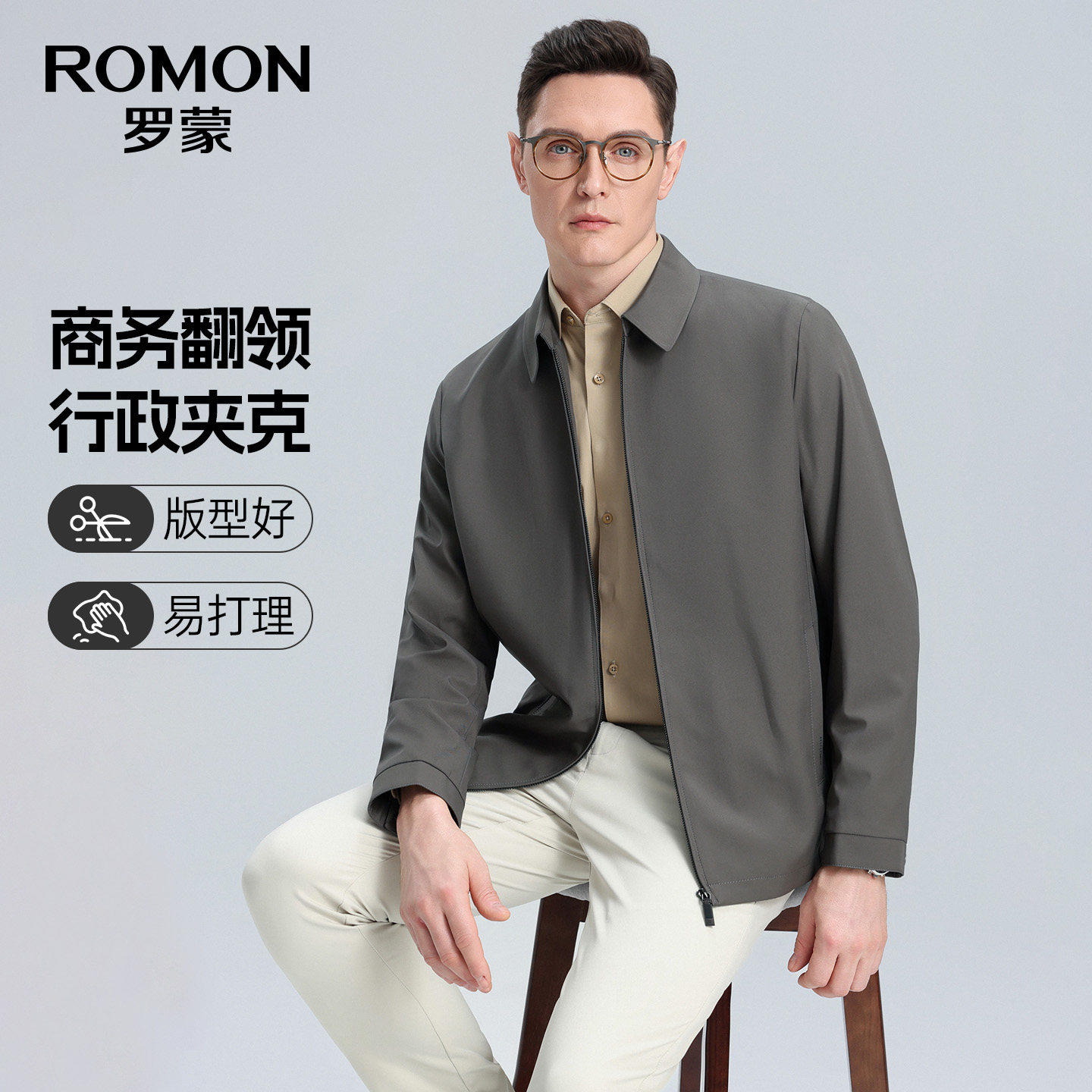 罗蒙男士翻领短款商务夹克衫2026春季新款行政干部风外套男爸爸装