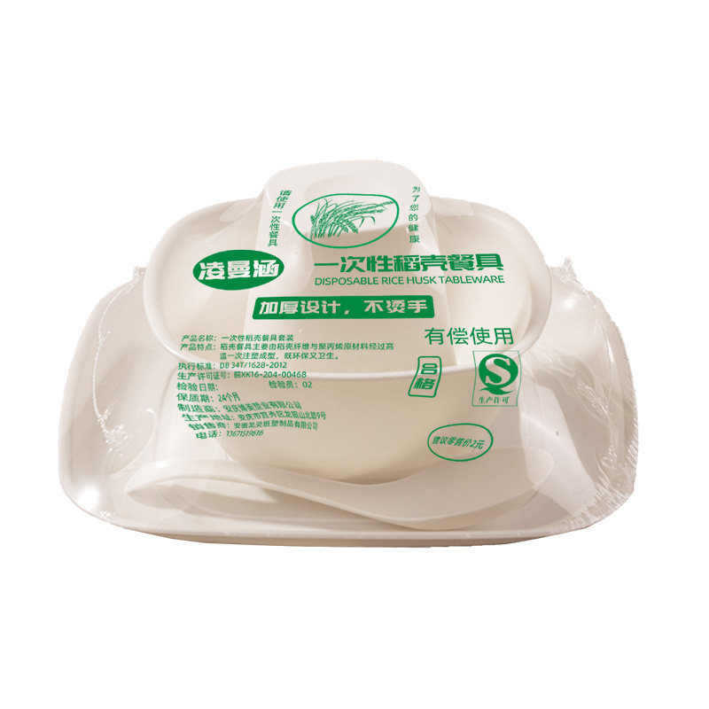 餐饮饭店稻壳一次性餐具三件套四件套商用杯盘碗筷套装食品级加厚