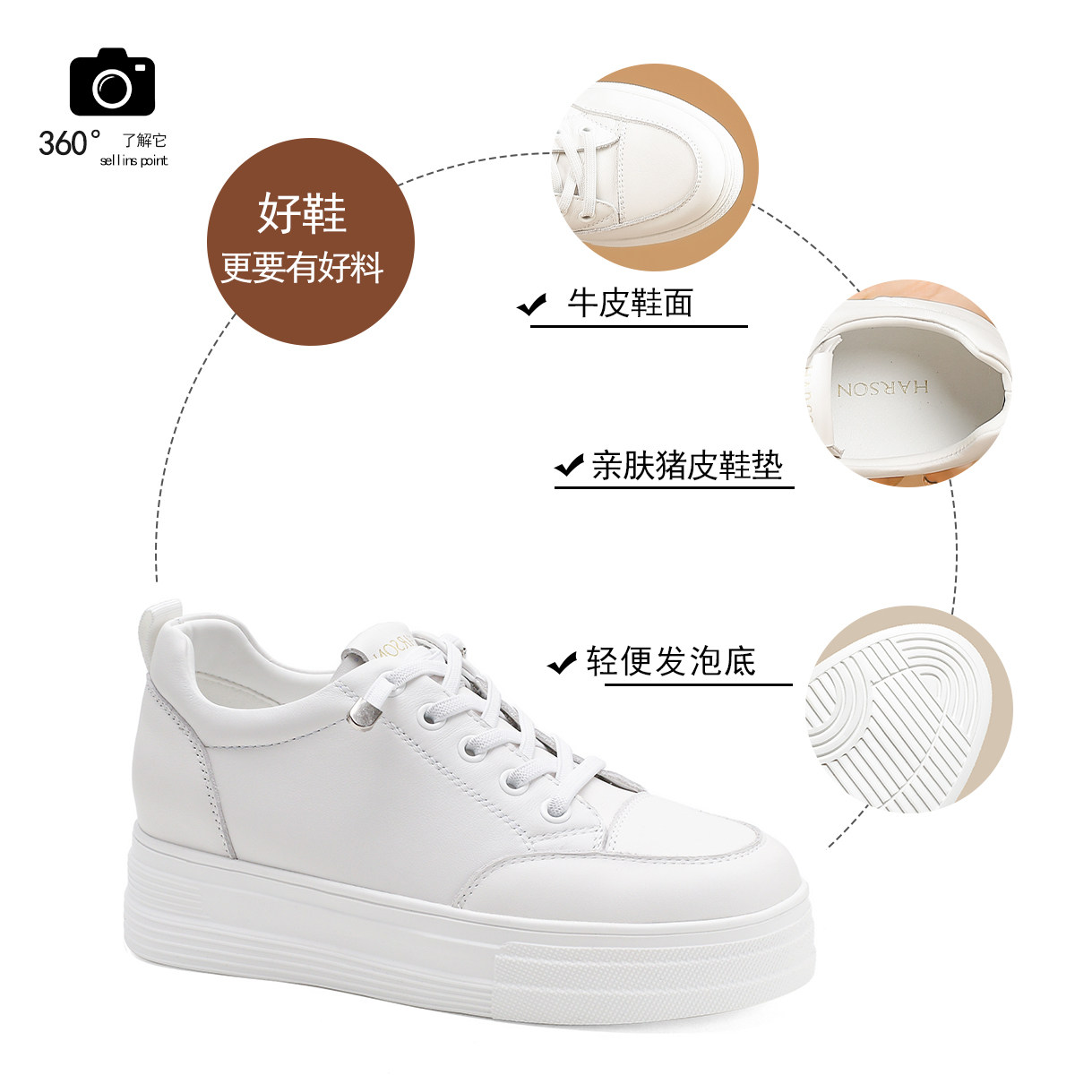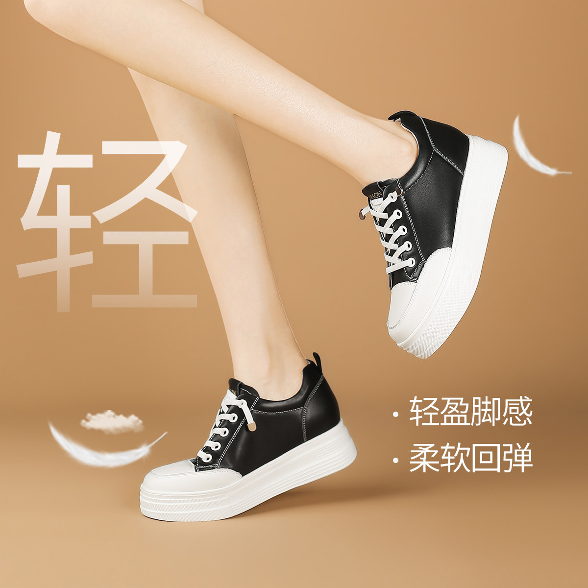 真皮~骄屿内增高芭蕾德训鞋女新款复古百搭休闲阿甘鞋厚底运动鞋