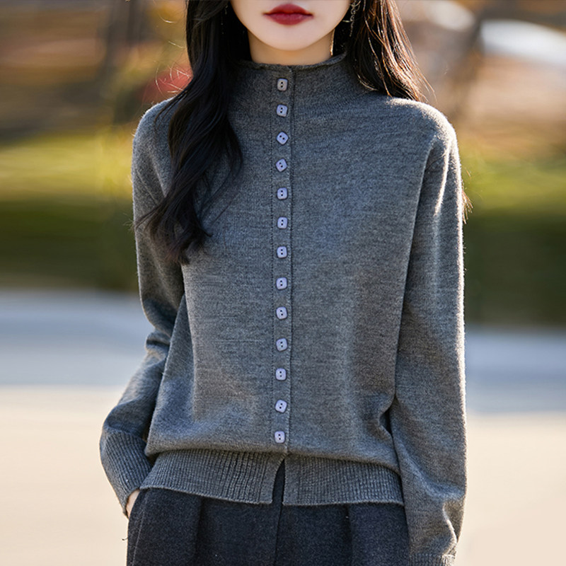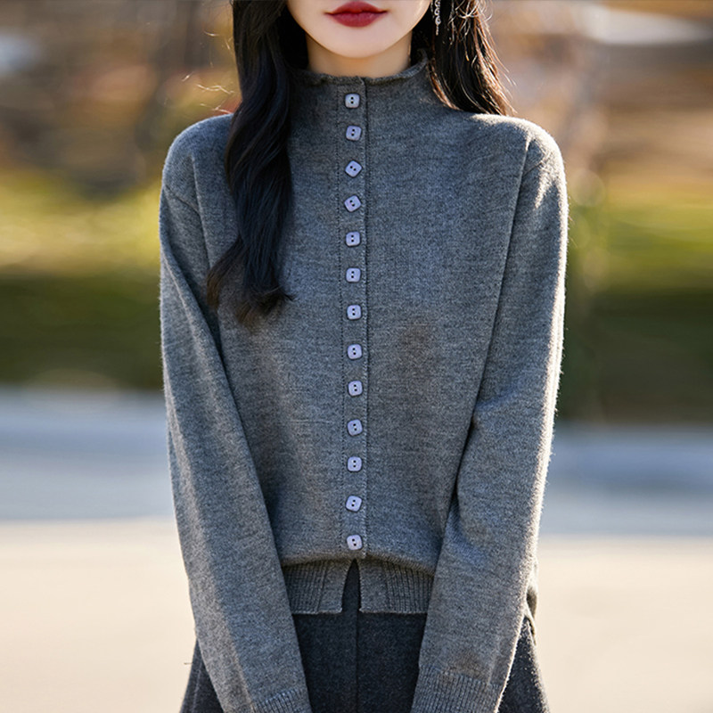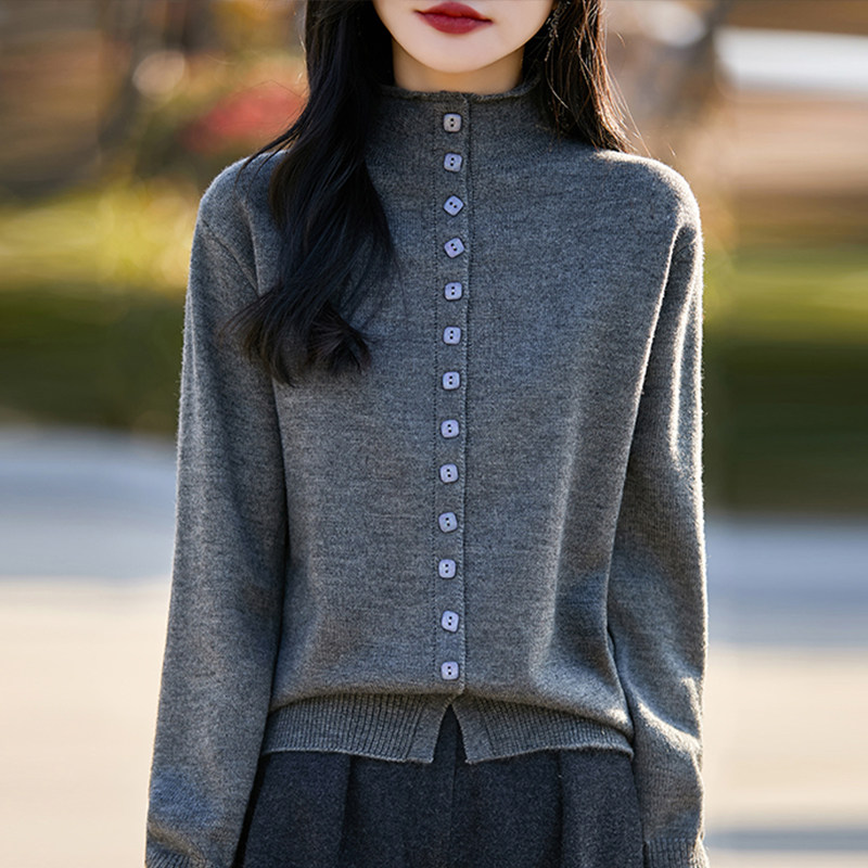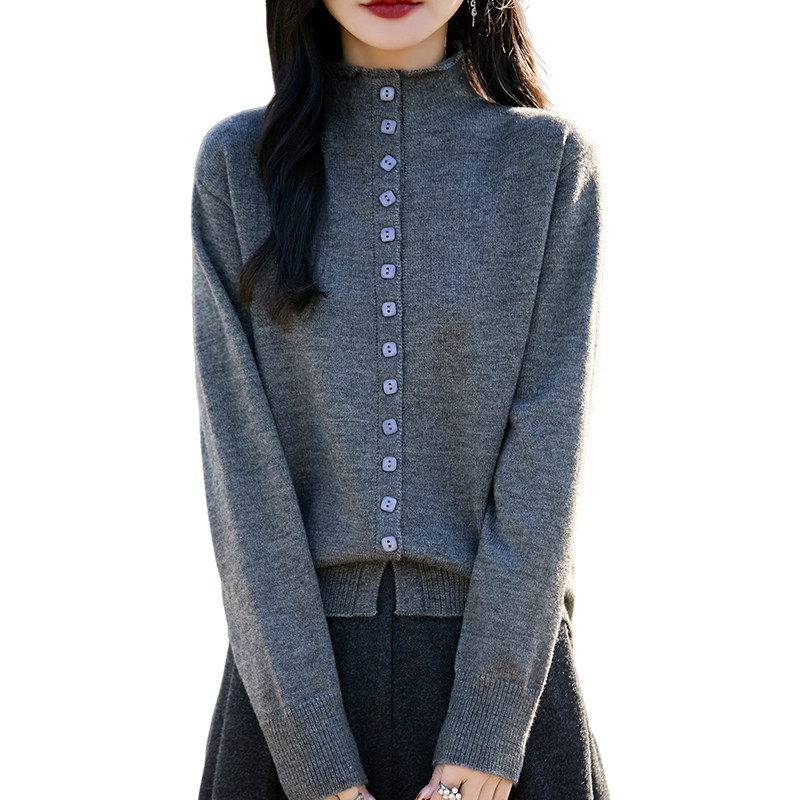 撤标撤柜(A)春秋款气质灰色高领针织开衫外套女洋气大码女装毛衣