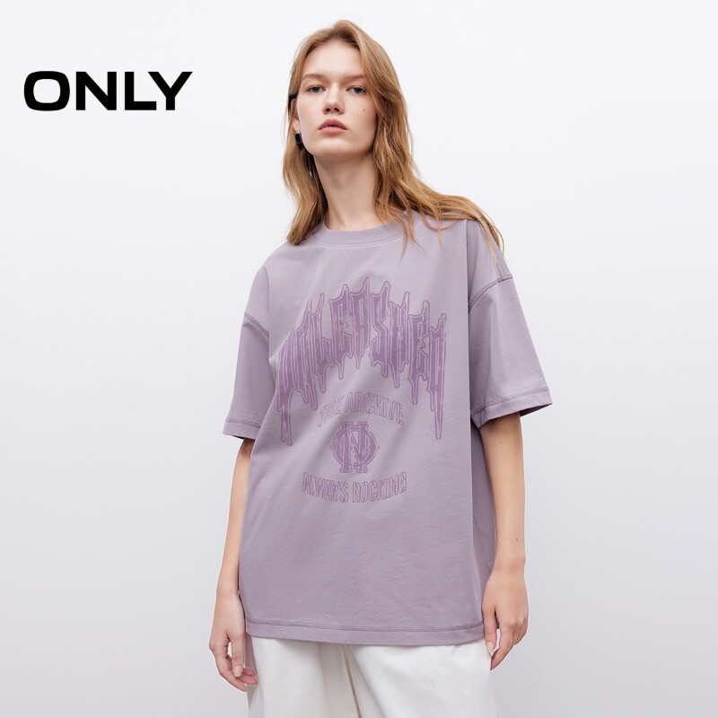 ONLY2026夏季新款上衣酷感字母印花OVERSIZE落肩圆领短袖T恤女