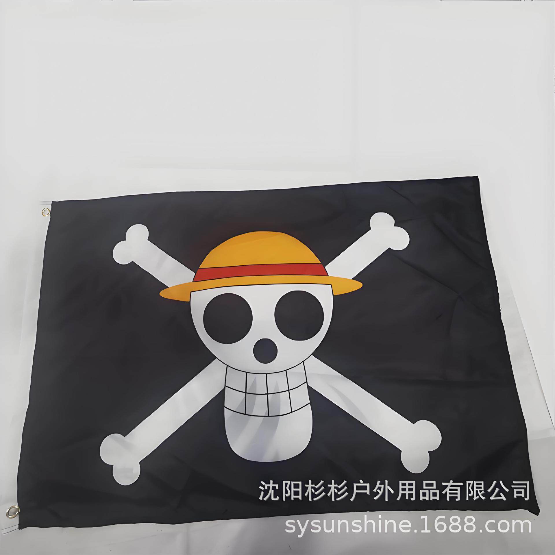 跨境海贼王旗帜亚马逊路飞草帽旗涤纶60*90 90*150海盗旗航海旗