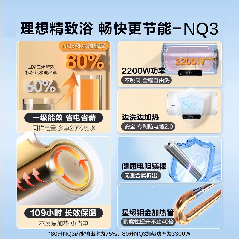 海尔出品统帅电热水器50/60升一级能效家用节能速热NQ3