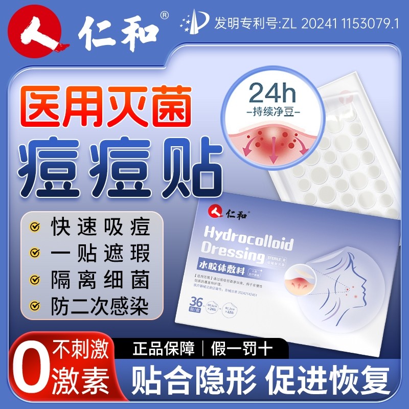 仁和痘痘贴修复消炎痘印医用型隐形祛痘贴敷料人工皮无菌防水修护