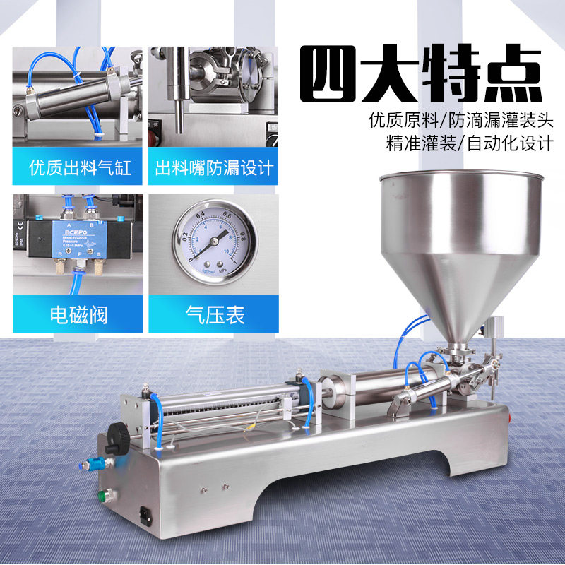 银泰卧式气动全自动膏体灌装机蜂蜜洗面奶耗油定量罐装机小颗粒酱料化妆品面霜药膏食用油洗洁精液体分装机
