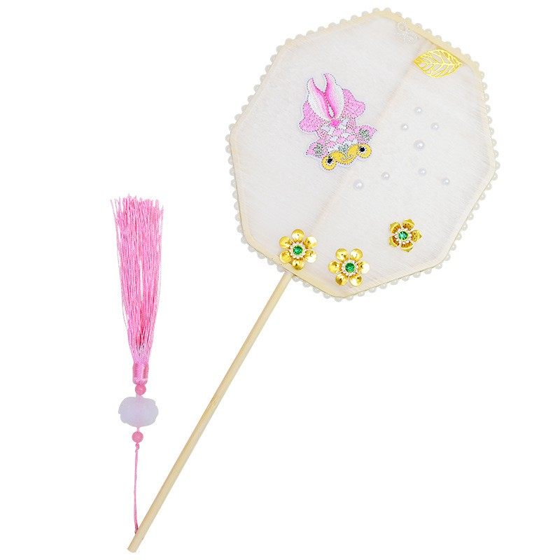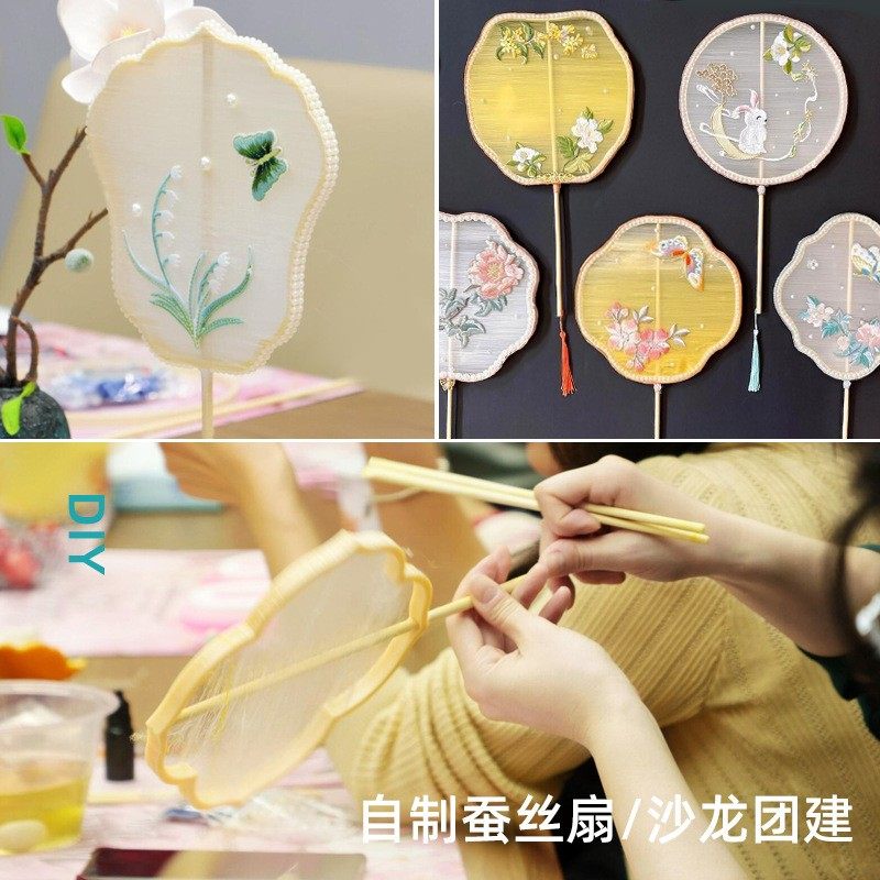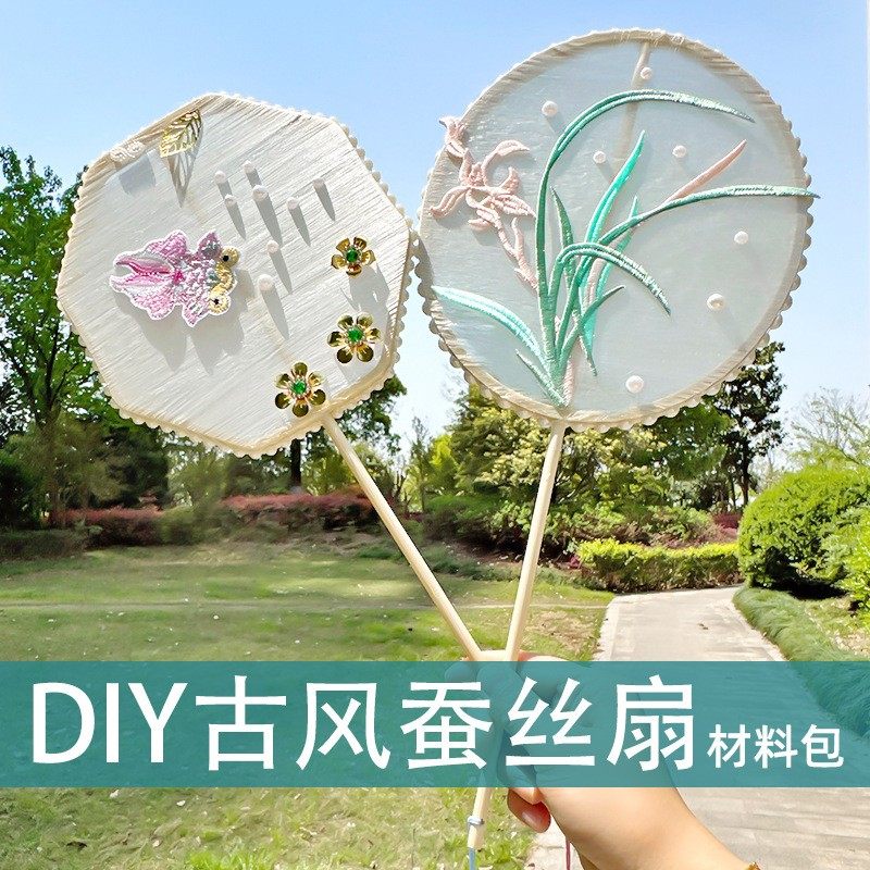 儿童节蚕丝扇手工DIY材料包扇骨配饰异形扇框圆形空白团扇材料X57