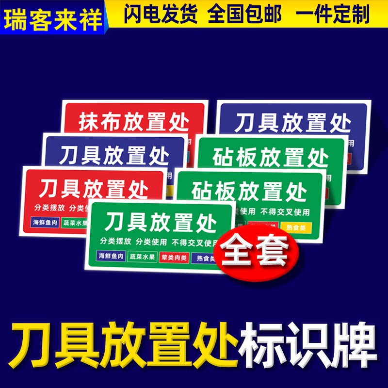 刀具放置处标识牌厨房4d5s6s管理标识拖把砧板毛巾抹布分类物品定位标识牌幼儿园食堂酒店学校餐饮提示牌定制