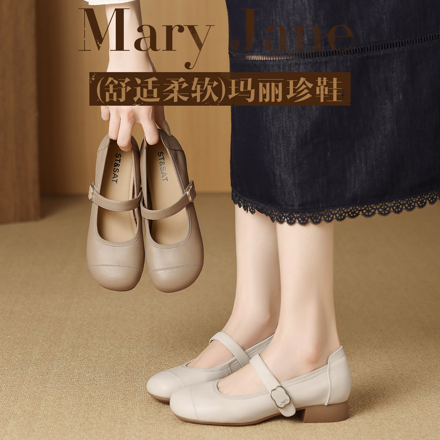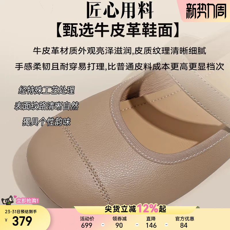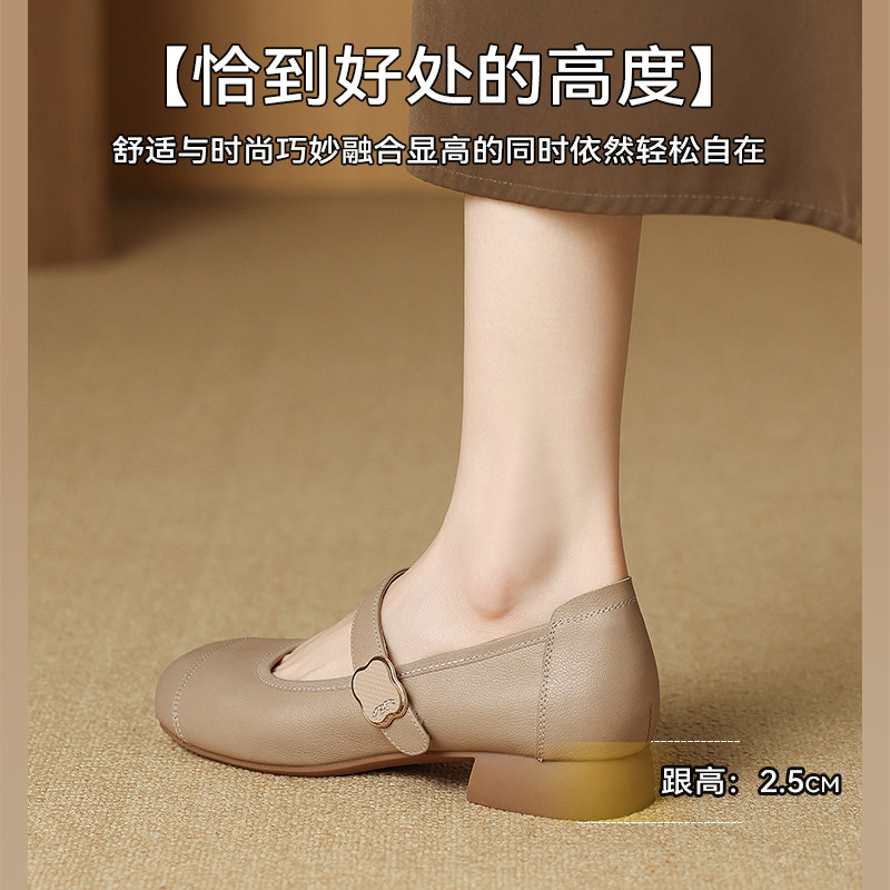 星期六真皮玛丽珍鞋女鞋春季新款头层牛皮法式软底皮鞋通勤妈妈鞋