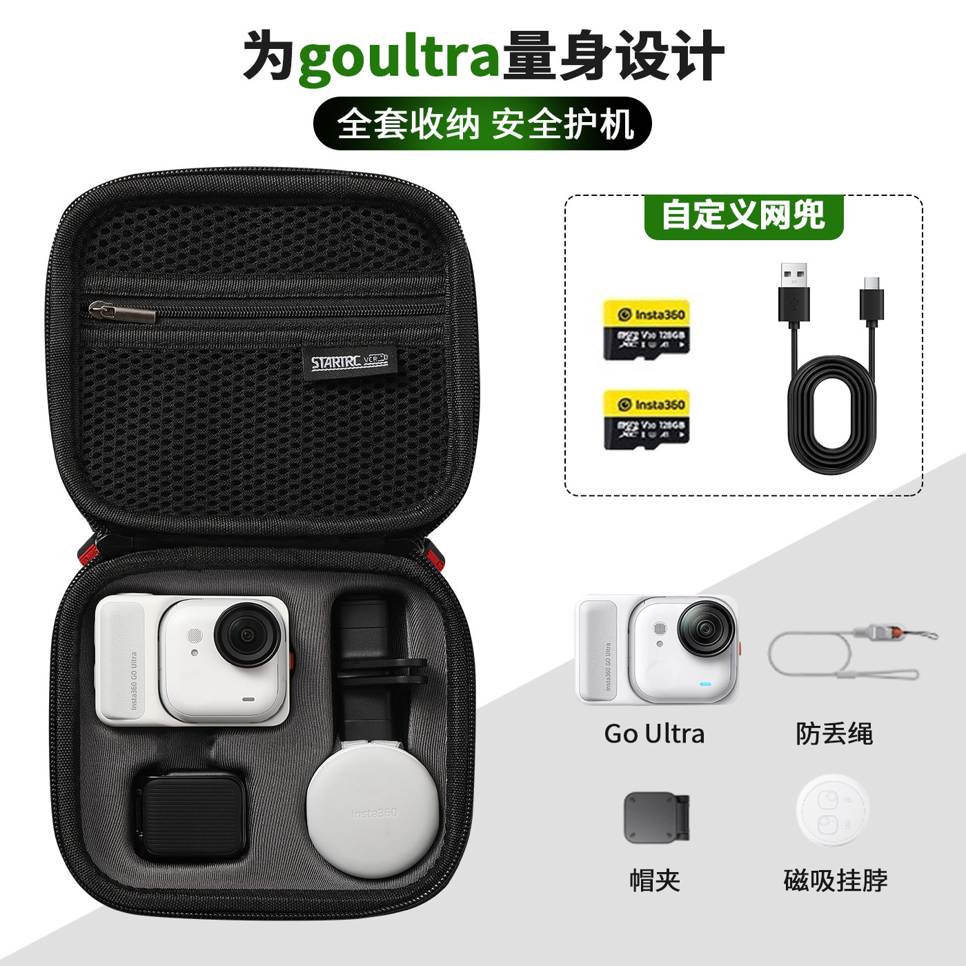 STARTRC/斯达飞适用影石goultra收纳包硬壳防摔运动相机保护套insta360 go ultra配件便携sd卡数据线收纳盒