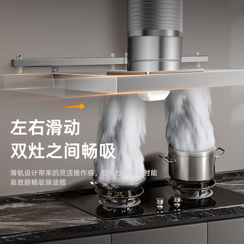简易油烟机强力换气扇大吸力排气扇厨房式滑动抽油烟机轨道不锈钢