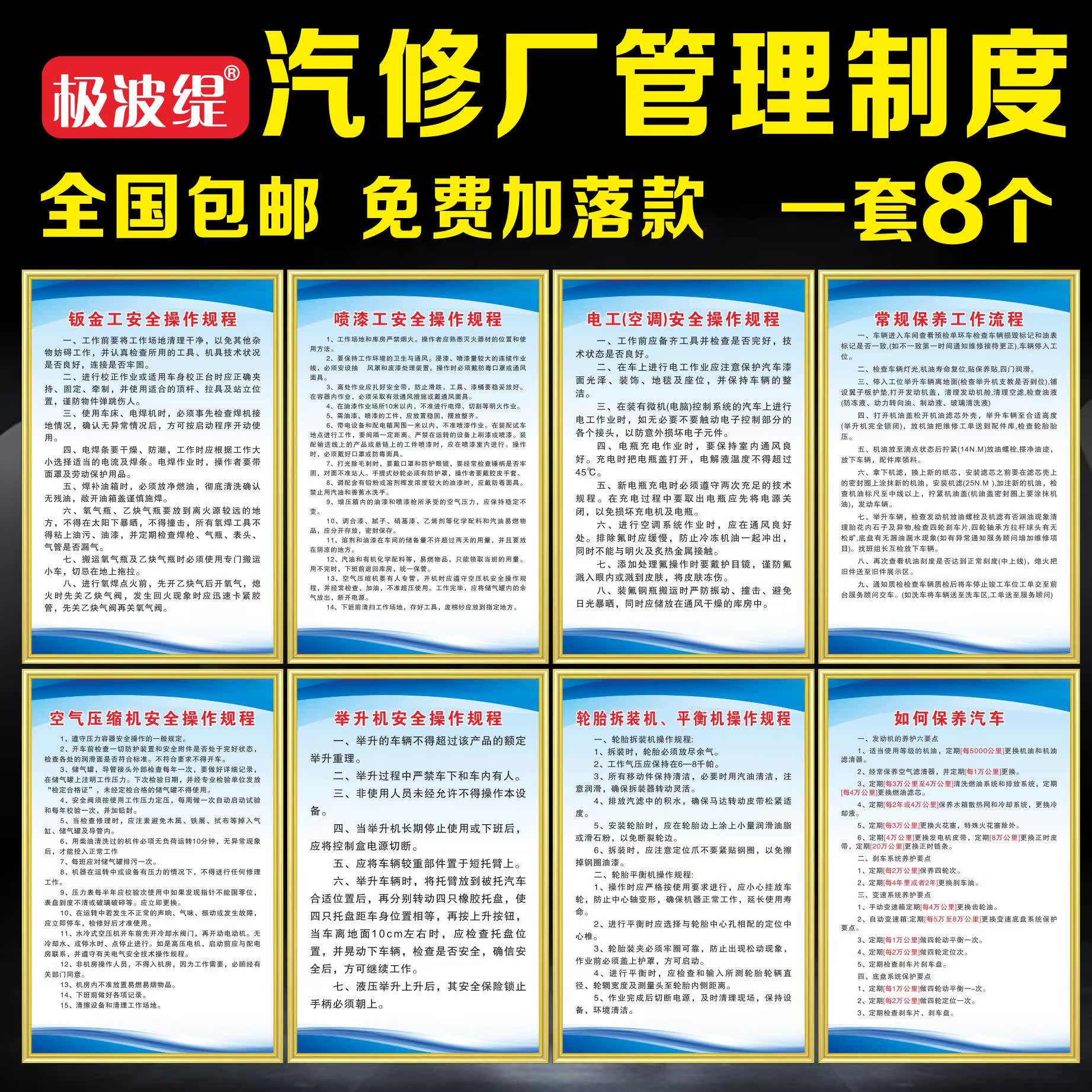 汽修厂管理制度标识牌二类三类汽车维修理全套4S店消防安全生产操