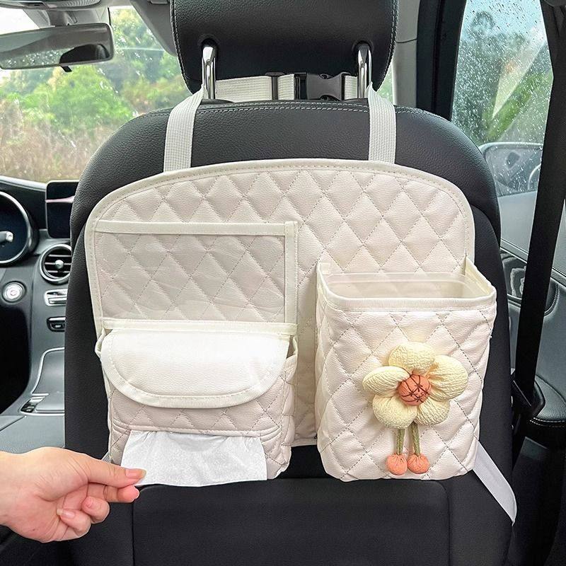 汽车座椅后背收纳挂袋可爱鸭车载置物防踢车内多功能纸巾盒垃圾桶