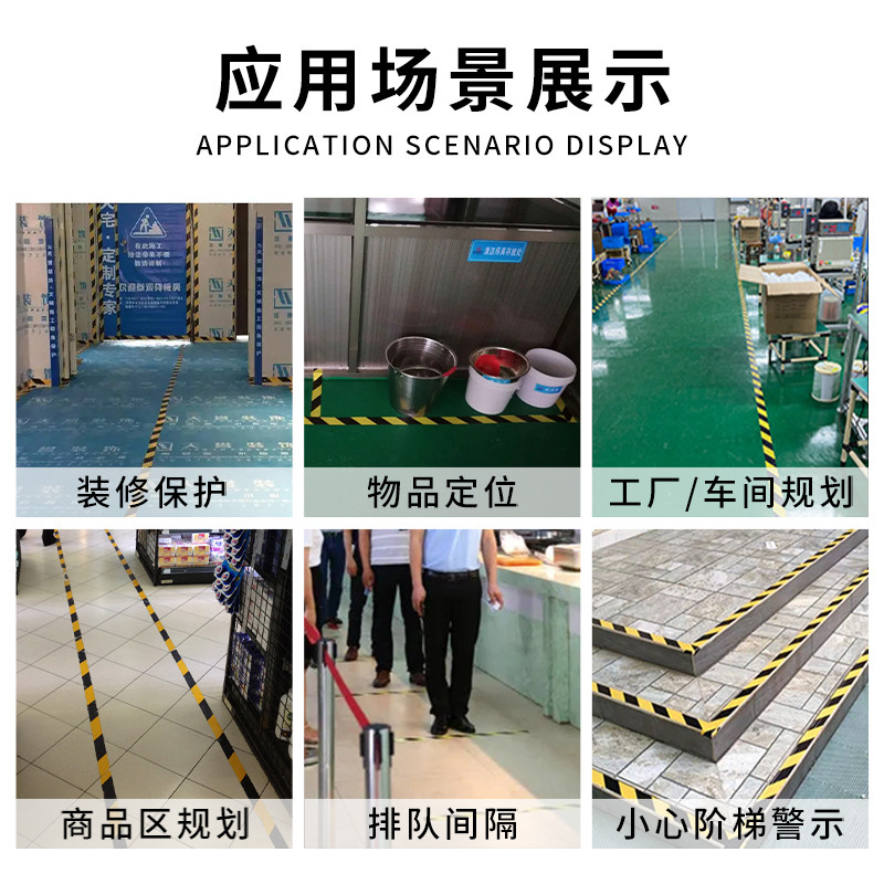 警示胶带pvc黑黄斑马线警戒地标贴地板地面彩色划线地板防滑保护