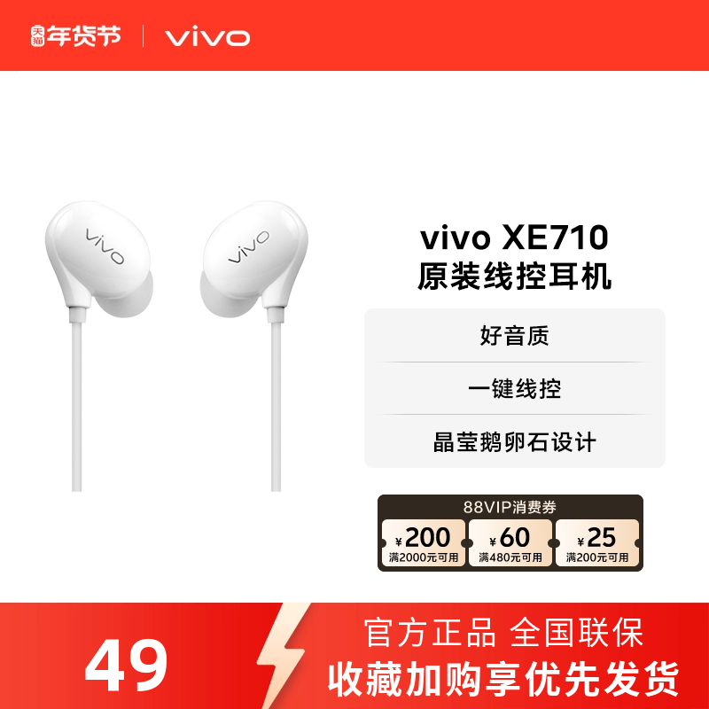 vivo XE710原装耳机入耳式线控圆孔耳机原装正品官方兼容type c