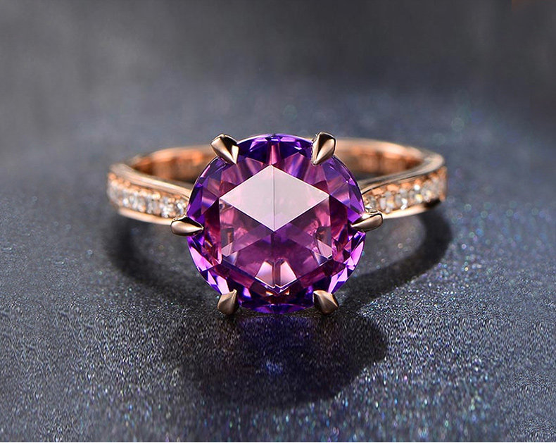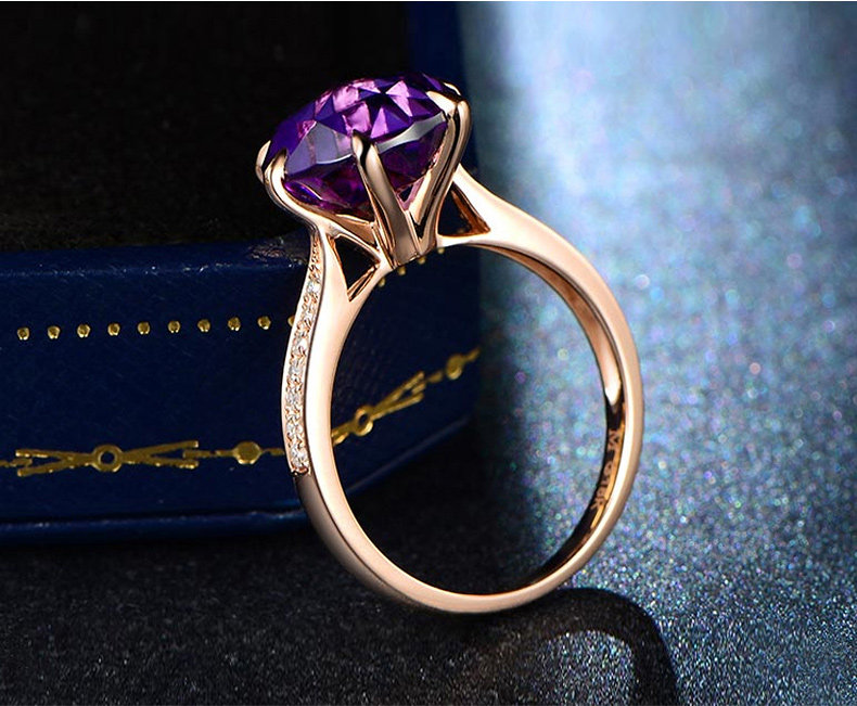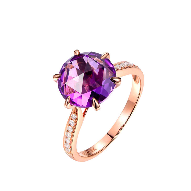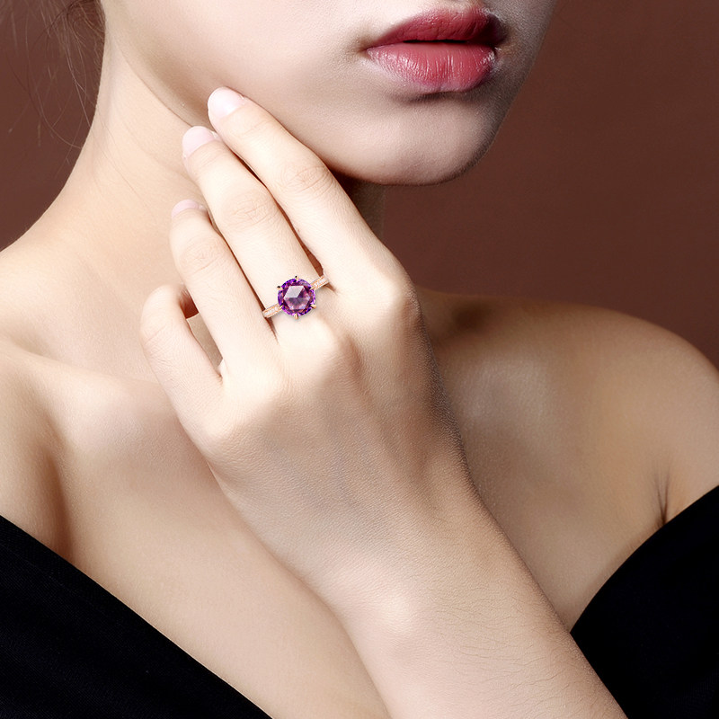 米莱珠宝 4.1克拉天然紫水晶戒指 女 18K金镶嵌钻石戒指 彩宝定制