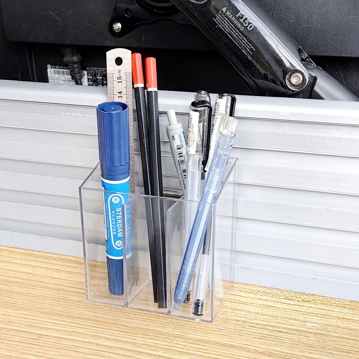 工位槽三分格笔筒,屏风透明下挂缝收纳盒,办公桌上插缝挂件神器