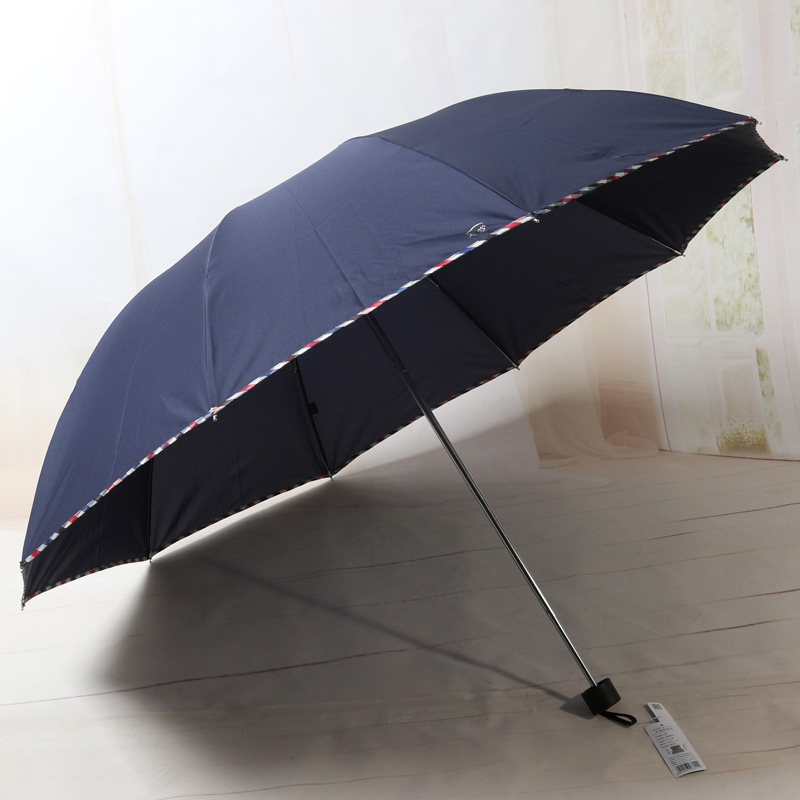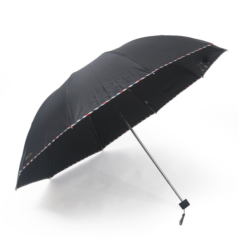 天堂3311E碰三折加大加固拒水布料纯色商务晴雨伞广告伞黑胶防晒