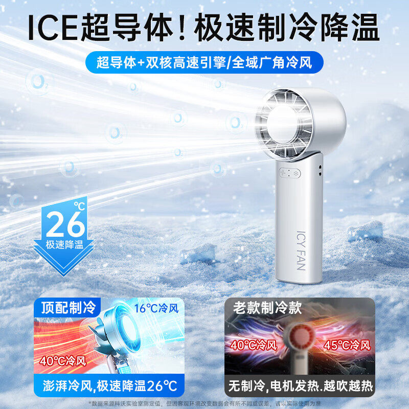 【降温冷风】科沃手持小风扇2026新款半导体制冷空调冰敷超长续航折叠挂脖迷你usb便携随身学生上课户外电扇f