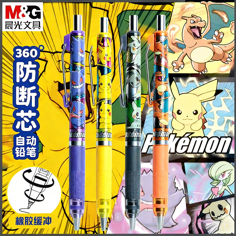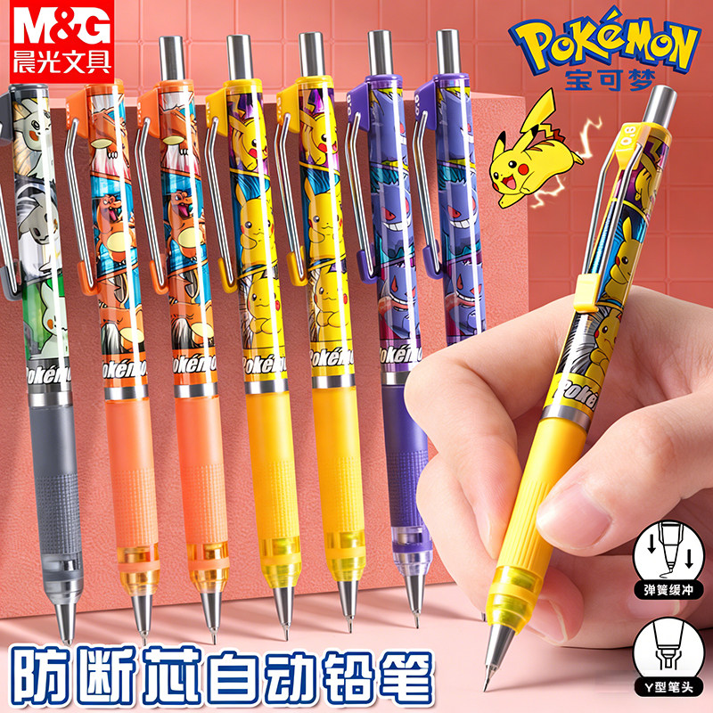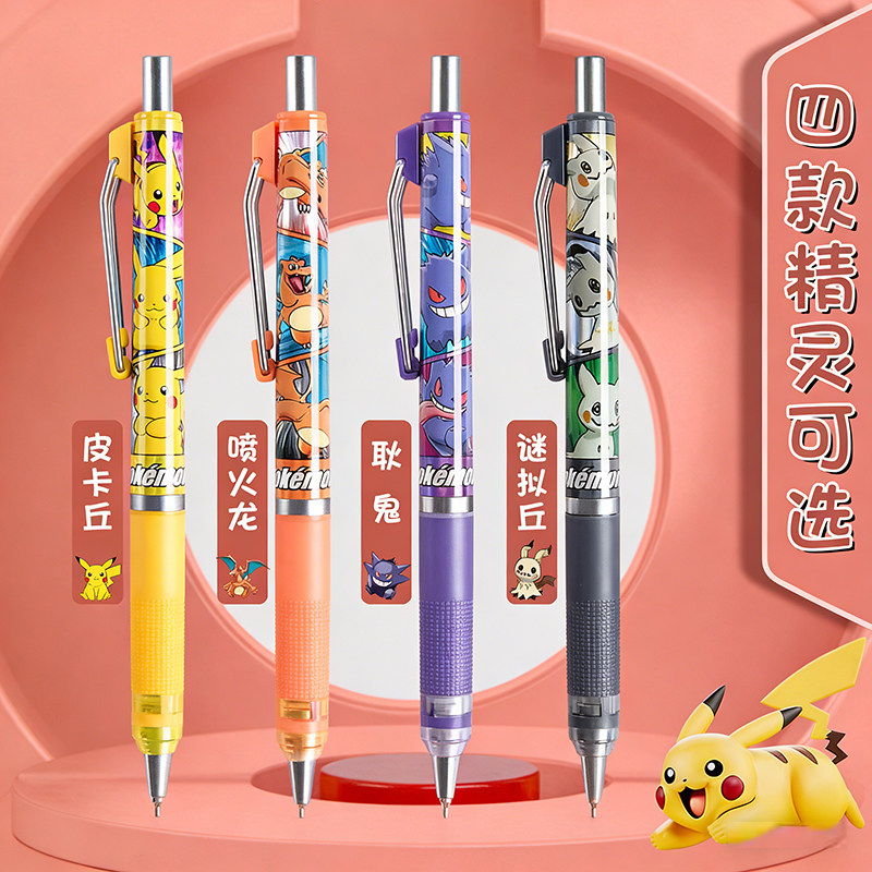 新品晨光联名宝可梦皮卡丘自动铅笔0.5mm防断芯小学生专用低重心