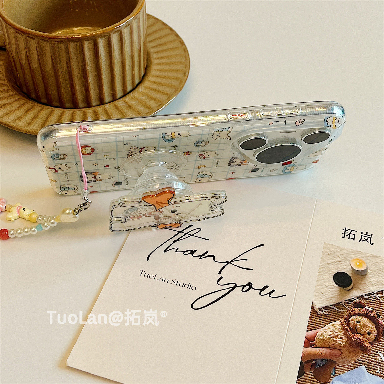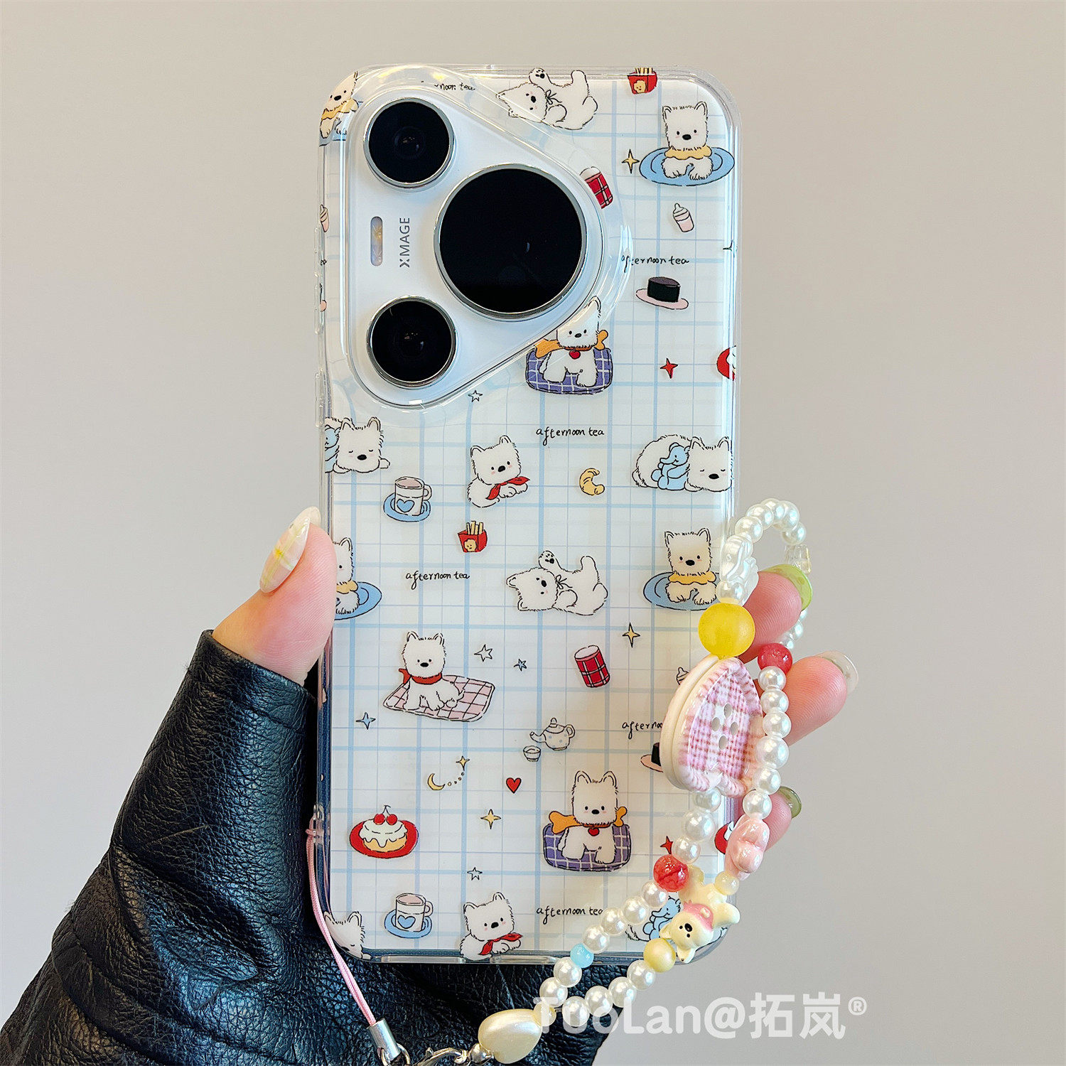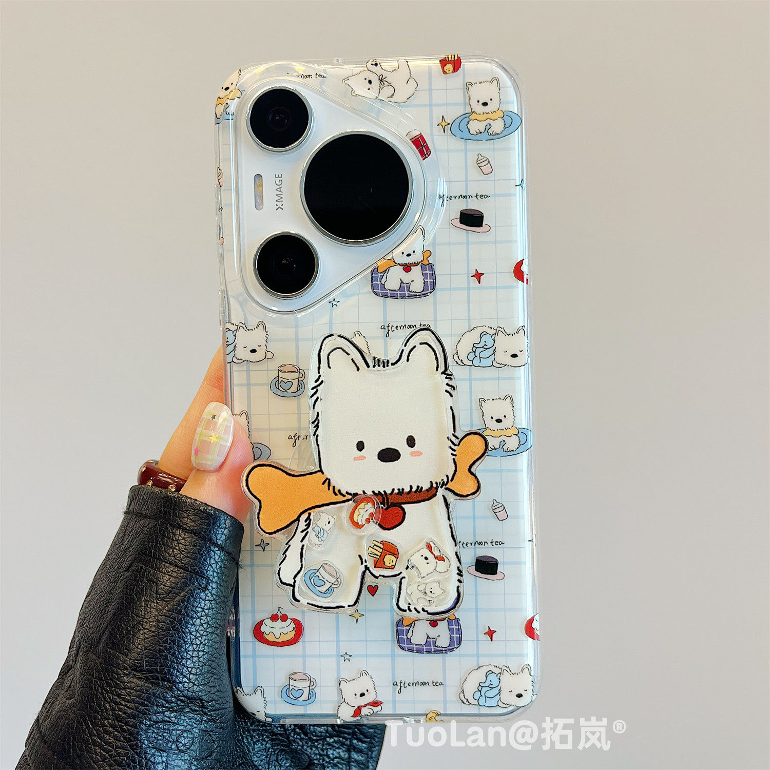 拓岚 适用华为pura80pro+新款手机壳双层日韩格纹Pura70ultra卡通西高地摇摇乐支架mate70/60pro挂绳硅胶防摔
