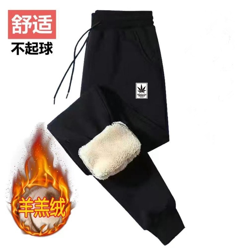 裤子男秋冬加绒加厚休闲长裤子冬季宽松羊羔绒束脚裤卫裤男运动裤