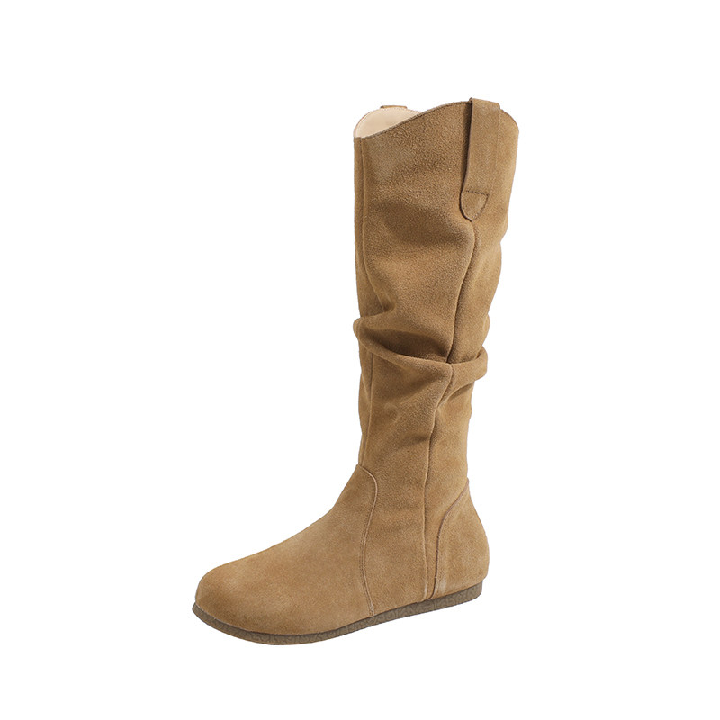 牛皮版~骄屿复古棕色勃肯长筒靴2025秋冬新款平底不过膝堆堆长靴