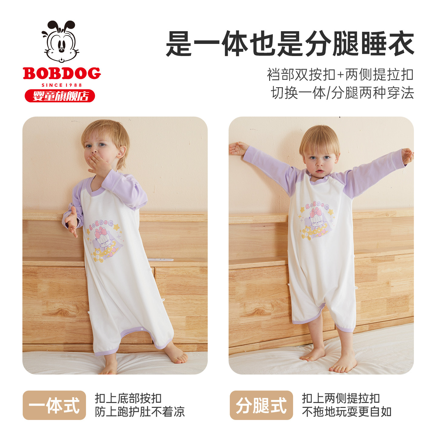 BeBeBus婴儿睡袋春秋儿童恒温分腿连体睡衣宝宝四季秋冬睡袋