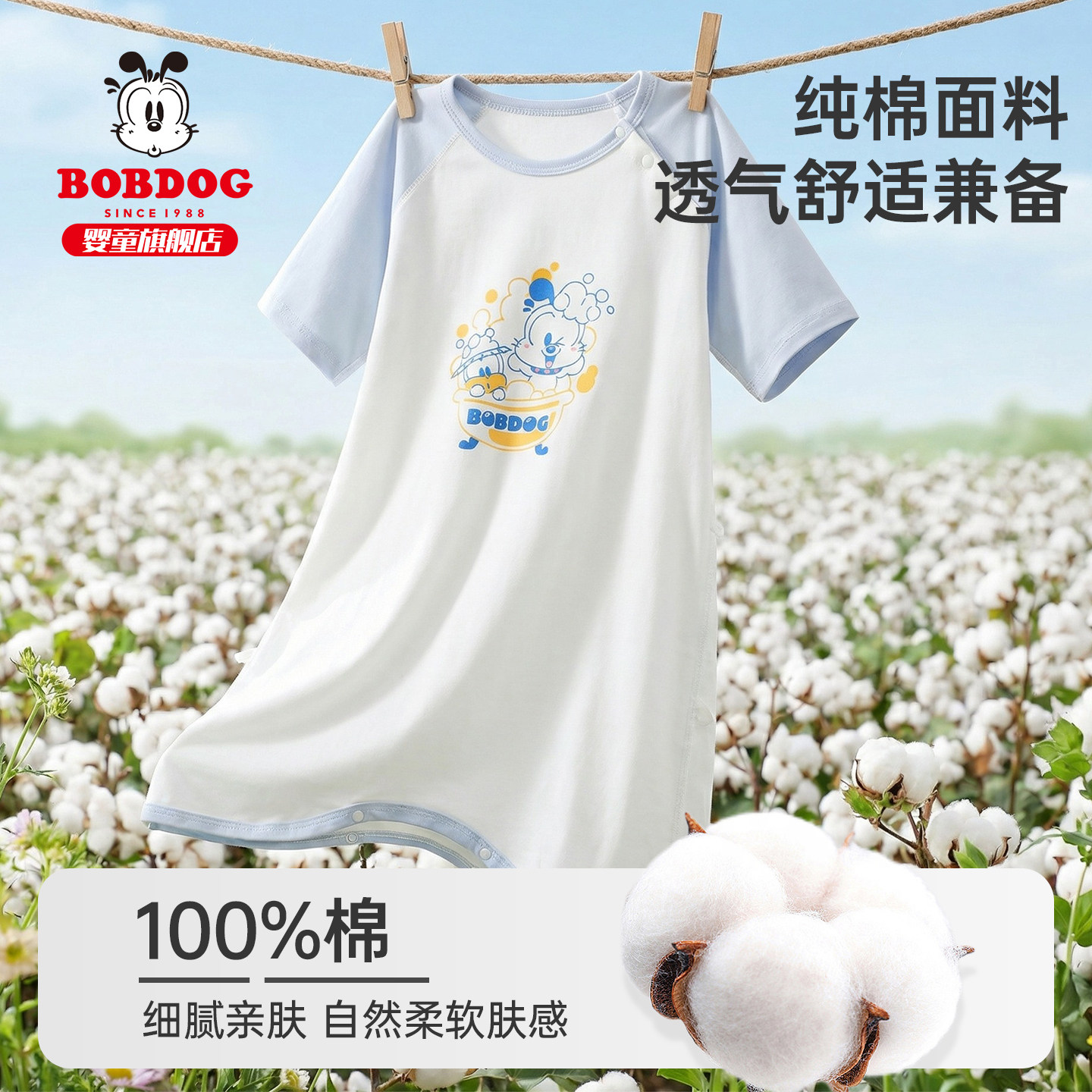 巴布豆婴儿专用睡袋宝薄款全棉睡裙分腿小月龄睡觉专用春秋防踢被