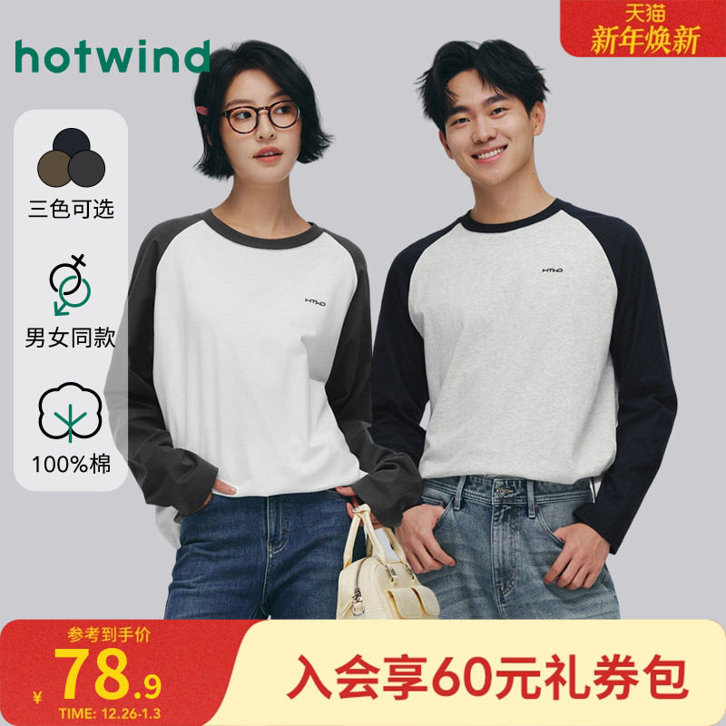 热风情侣款长T恤2025年秋季新款男女同款T恤纯棉舒适透气日常通勤