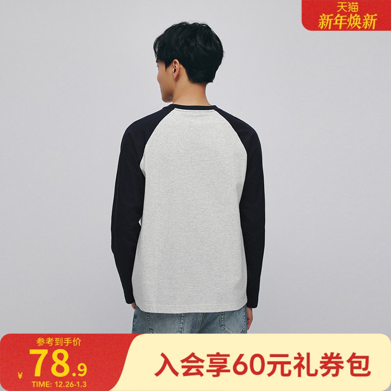 班尼路双面绒长袖t恤男2025新款秋冬季白色打底衫潮流字母上衣服A