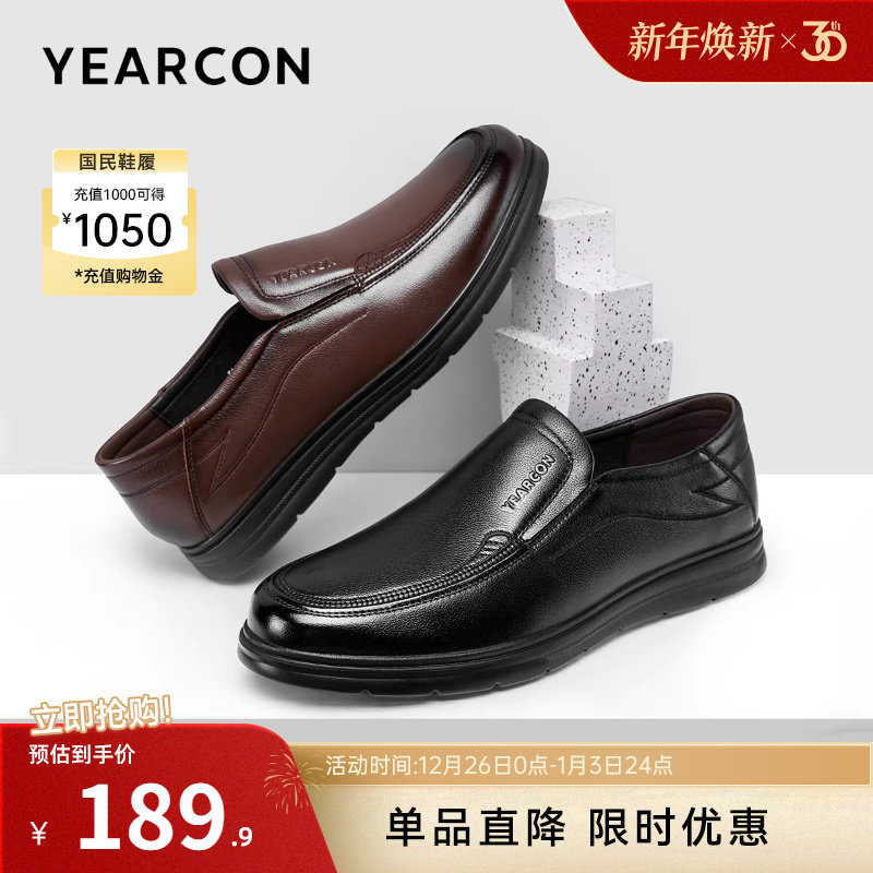 意尔康男鞋2025新款真皮商务休闲皮鞋男士软底一脚蹬中年爸爸鞋