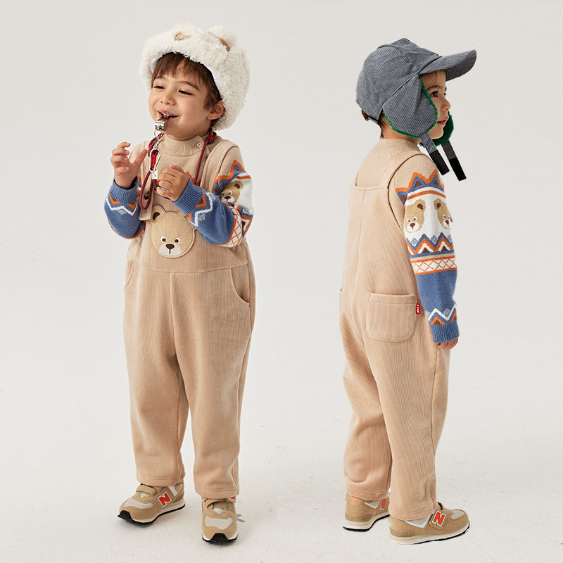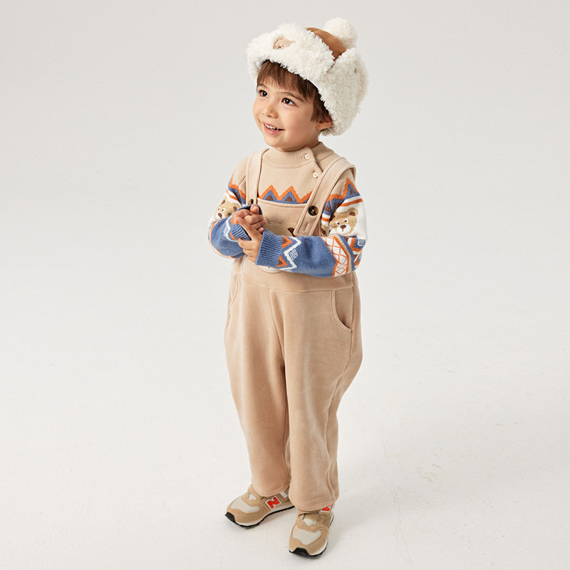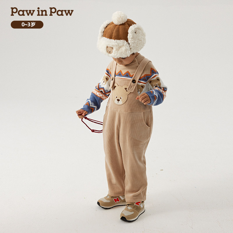PawinPaw卡通小熊童装秋冬男宝宝可调节肩带加绒背带裤舒适
