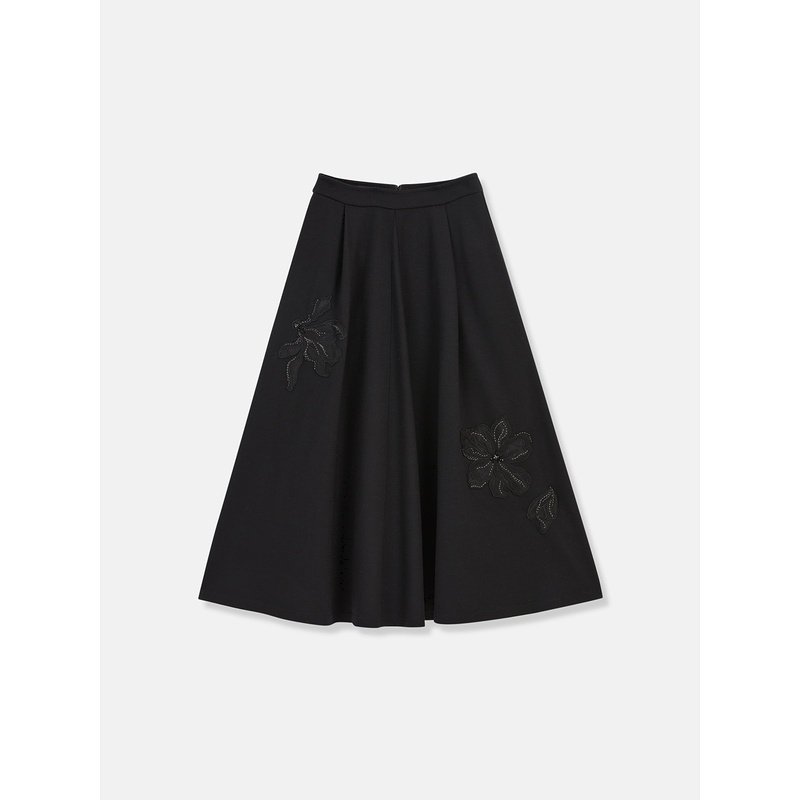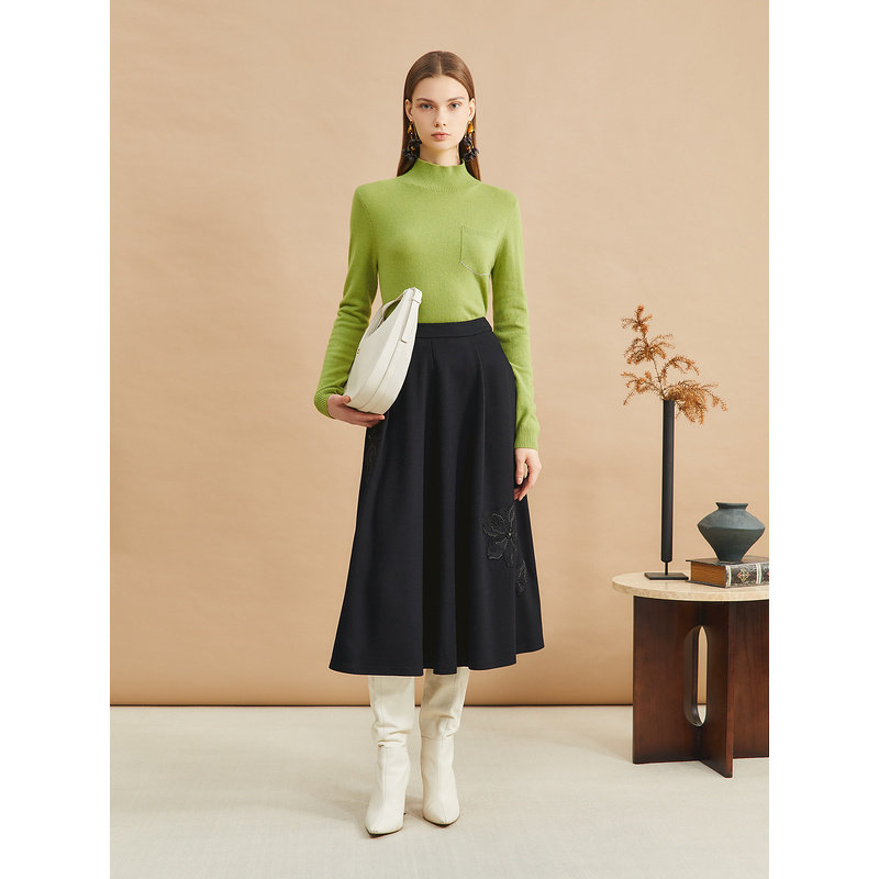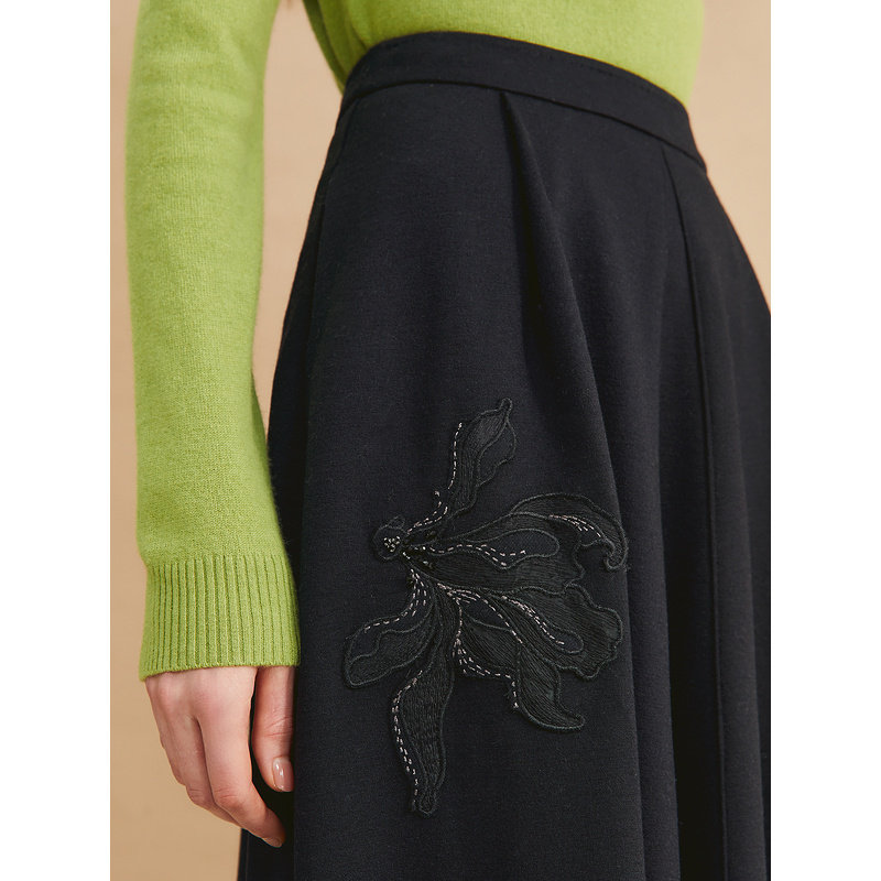 【木兰花系列】YINER音儿女装冬季时尚100羊毛绣花小黑裙半身裙