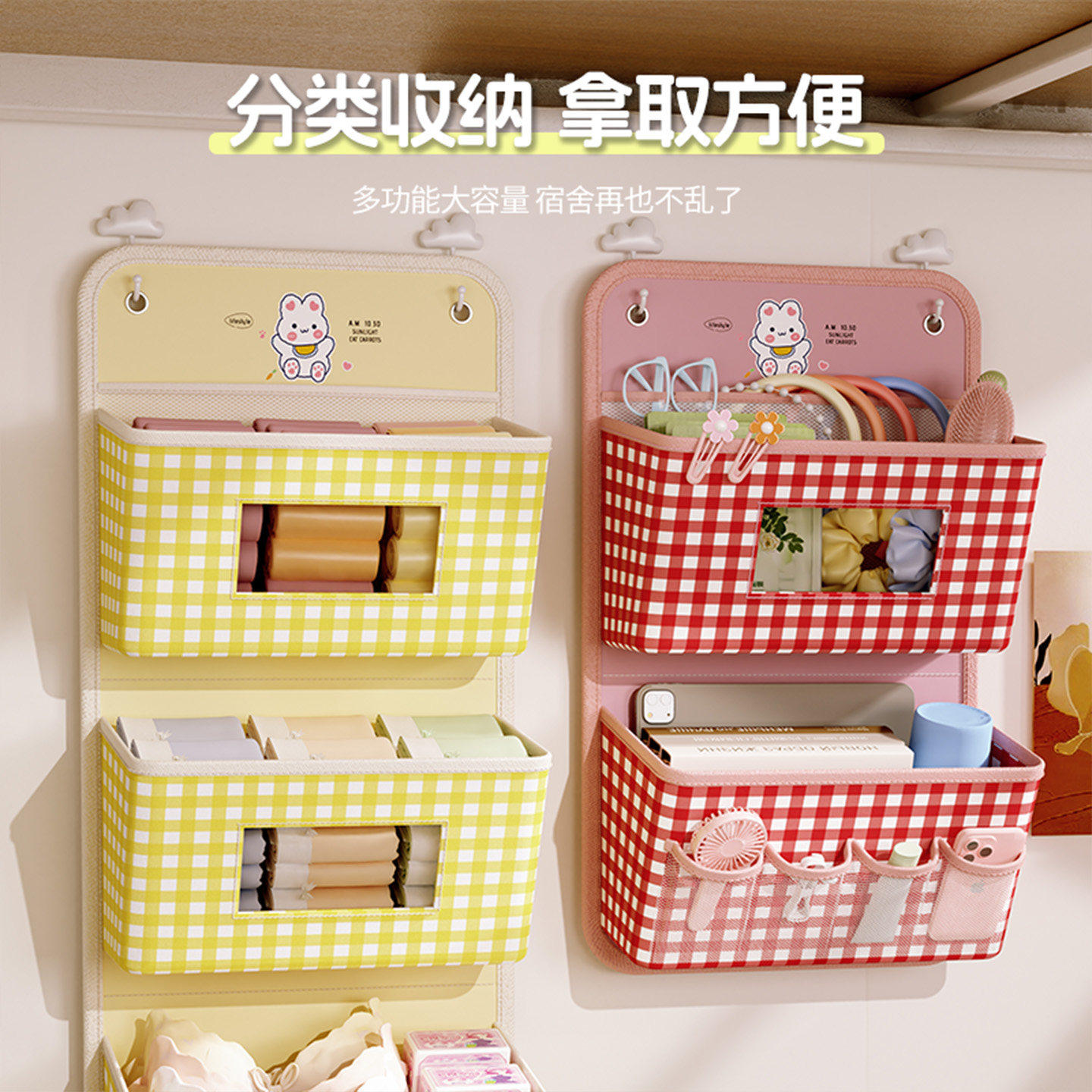 宿舍床上挂袋衣柜挂式门后墙上置物架内衣杂物收纳盒袋上铺置物袋